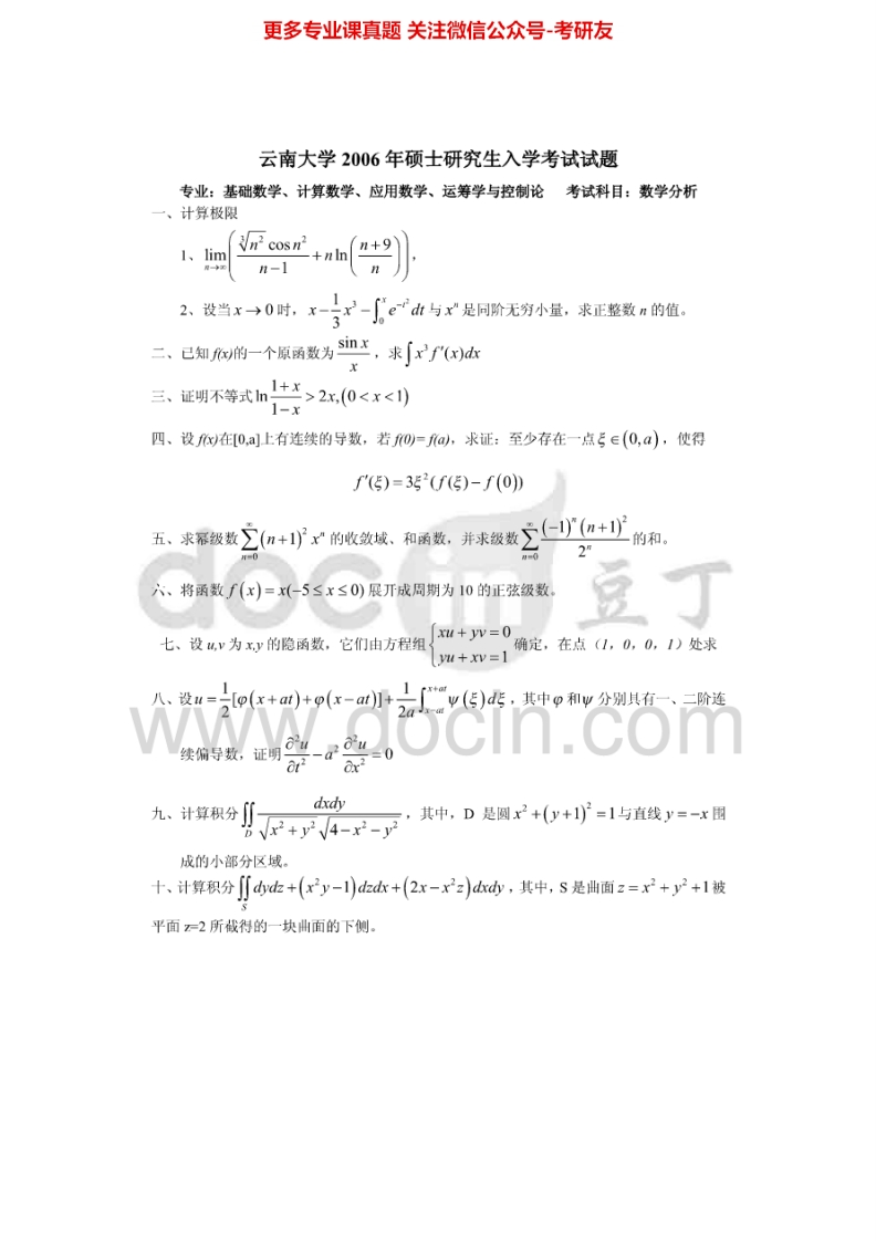云南大学数学分析2004-2014考研真题汇编.Image.Marked猴哥6个月前发布关注私信3.10MB19页06329云南大学数学分析2004-2014考研真题汇编.Image.Marked此内容为免费资源,请登录后查看¥0 登录查看免费资源 第1页 / 共19页 第2页 / 共19页 第3页 / 共19页 该文档为免费文档,您可直接下载完整版进行阅读 © 版权声明文章版权归作者所有,未经允许请勿转载。THE END考研专业课 喜欢就支持一下吧点赞29赞赏 分享QQ空间微博QQ好友海报分享复制链接收藏
