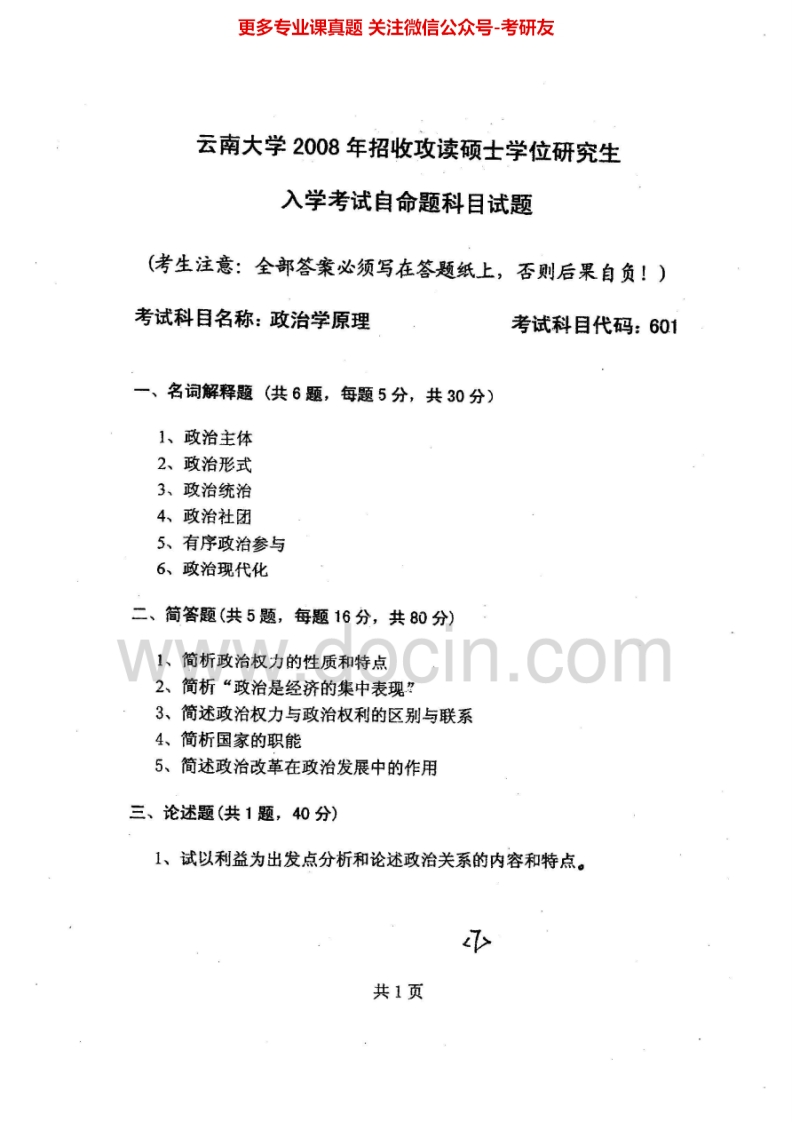 云南大学政治学原理2006-2011、2013-2014考研真题汇编.Image.Marked猴哥6个月前发布关注私信1.62MB9页03533云南大学政治学原理2006-2011、2013-2014考研真题汇编.Image.Marked此内容为免费资源,请登录后查看¥0 登录查看免费资源 第1页 / 共9页 第2页 / 共9页 第3页 / 共9页 该文档为免费文档,您可直接下载完整版进行阅读 © 版权声明文章版权归作者所有,未经允许请勿转载。THE END考研专业课 喜欢就支持一下吧点赞33赞赏 分享QQ空间微博QQ好友海报分享复制链接收藏