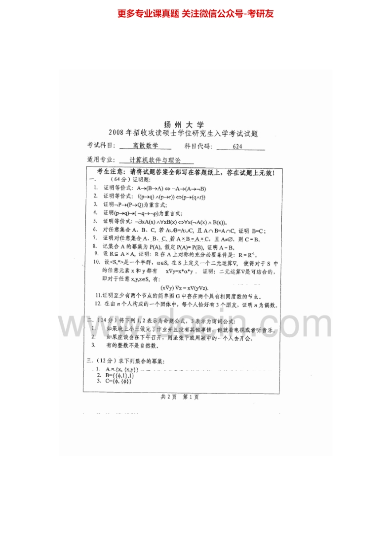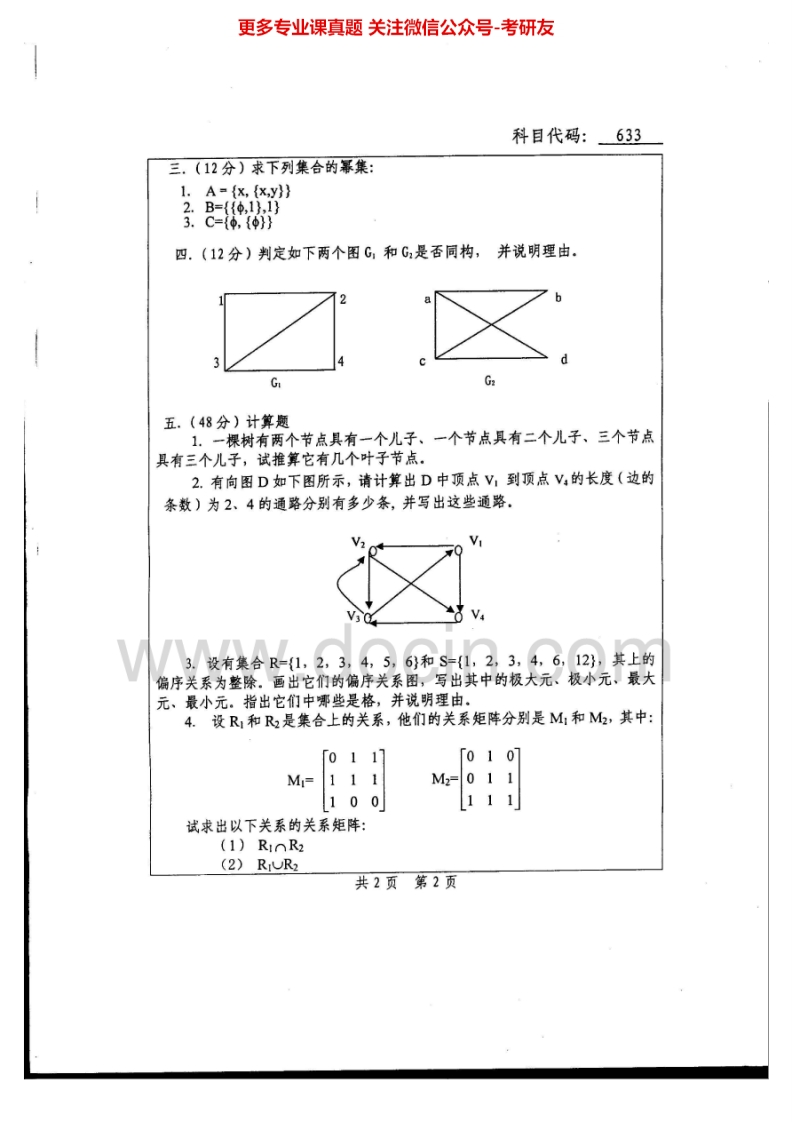 扬州大学602离散数学2007-2008、2014-2015考研真题汇编.Image.Marked猴哥6个月前发布关注私信1.42MB8页03814扬州大学602离散数学2007-2008、2014-2015考研真题汇编.Image.Marked此内容为免费资源,请登录后查看¥0 登录查看免费资源 第1页 / 共8页 第2页 / 共8页 第3页 / 共8页 该文档为免费文档,您可直接下载完整版进行阅读 © 版权声明文章版权归作者所有,未经允许请勿转载。THE END考研专业课 喜欢就支持一下吧点赞14赞赏 分享QQ空间微博QQ好友海报分享复制链接收藏