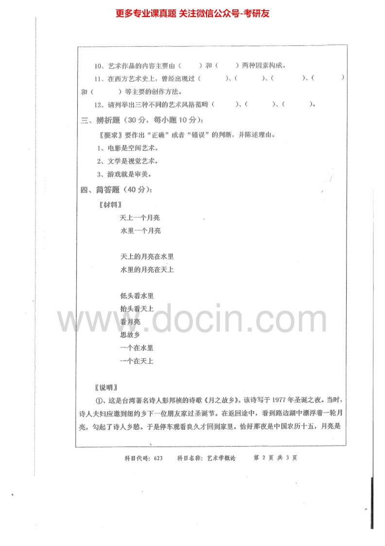 扬州大学623艺术学概论2014-2015考研真题汇编.Image.Marked猴哥6个月前发布关注私信1.17MB5页06549扬州大学623艺术学概论2014-2015考研真题汇编.Image.Marked此内容为免费资源,请登录后查看¥0 登录查看免费资源 第1页 / 共5页 第2页 / 共5页 第3页 / 共5页 该文档为免费文档,您可直接下载完整版进行阅读 © 版权声明文章版权归作者所有,未经允许请勿转载。THE END考研专业课 喜欢就支持一下吧点赞49赞赏 分享QQ空间微博QQ好友海报分享复制链接收藏