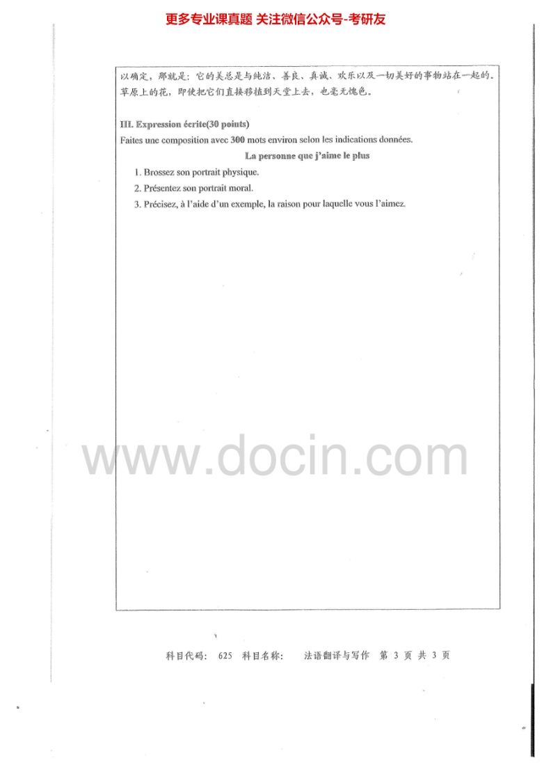扬州大学625法语翻译与写作2014-2015考研真题汇编.Image.Marked猴哥6个月前发布关注私信1.36MB5页08445扬州大学625法语翻译与写作2014-2015考研真题汇编.Image.Marked此内容为免费资源,请登录后查看¥0 登录查看免费资源 第1页 / 共5页 第2页 / 共5页 第3页 / 共5页 该文档为免费文档,您可直接下载完整版进行阅读 © 版权声明文章版权归作者所有,未经允许请勿转载。THE END《扬州大学》(625)法语翻译与写作考研资料考研专业课 喜欢就支持一下吧点赞45赞赏 分享QQ空间微博QQ好友海报分享复制链接收藏