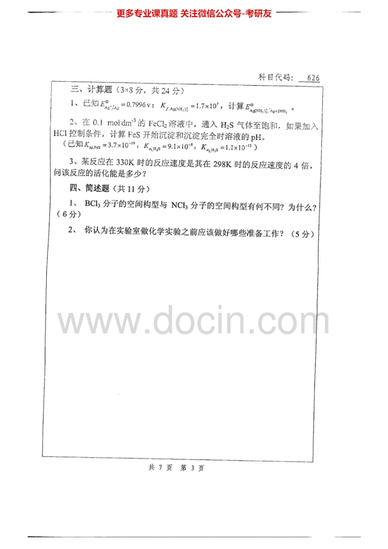 扬州大学630无机化学2007-2008、2014-2015考研真题汇编.Image.Marked猴哥6个月前发布关注私信4.57MB22页08962扬州大学630无机化学2007-2008、2014-2015考研真题汇编.Image.Marked此内容为免费资源,请登录后查看¥0 登录查看免费资源 第1页 / 共22页 第2页 / 共22页 第3页 / 共22页 该文档为免费文档,您可直接下载完整版进行阅读 © 版权声明文章版权归作者所有,未经允许请勿转载。THE END考研专业课 喜欢就支持一下吧点赞62赞赏 分享QQ空间微博QQ好友海报分享复制链接收藏