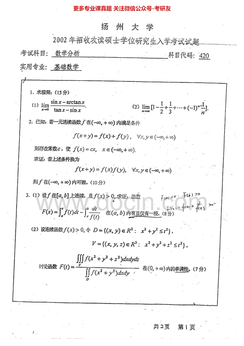 扬州大学601数学分析1999、2001-2008、2014-2015考研真题汇编.Image.Marked猴哥6个月前发布关注私信4.19MB21页04333扬州大学601数学分析1999、2001-2008、2014-2015考研真题汇编.Image.Marked此内容为免费资源,请登录后查看¥0 登录查看免费资源 第1页 / 共21页 第2页 / 共21页 第3页 / 共21页 该文档为免费文档,您可直接下载完整版进行阅读 © 版权声明文章版权归作者所有,未经允许请勿转载。THE END《扬州大学》(601)数学分析考研资料考研专业课 喜欢就支持一下吧点赞33赞赏 分享QQ空间微博QQ好友海报分享复制链接收藏