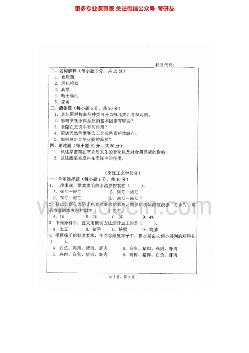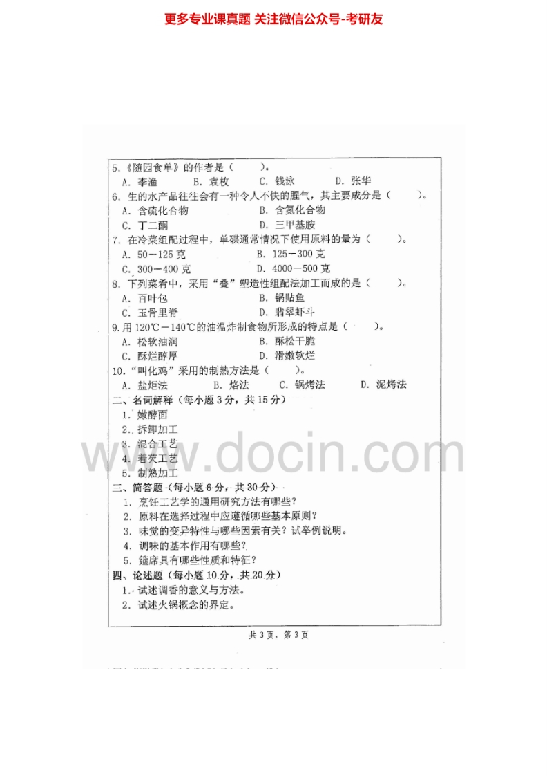扬州大学639烹饪综合2008、2014-2015考研真题汇编.Image.Marked猴哥6个月前发布关注私信1.53MB9页06217扬州大学639烹饪综合2008、2014-2015考研真题汇编.Image.Marked此内容为免费资源,请登录后查看¥0 登录查看免费资源 第1页 / 共9页 第2页 / 共9页 第3页 / 共9页 该文档为免费文档,您可直接下载完整版进行阅读 © 版权声明文章版权归作者所有,未经允许请勿转载。THE END《扬州大学》(639)烹饪综合(烹饪工艺学、烹饪化学)考研资料考研专业课 喜欢就支持一下吧点赞17赞赏 分享QQ空间微博QQ好友海报分享复制链接收藏
