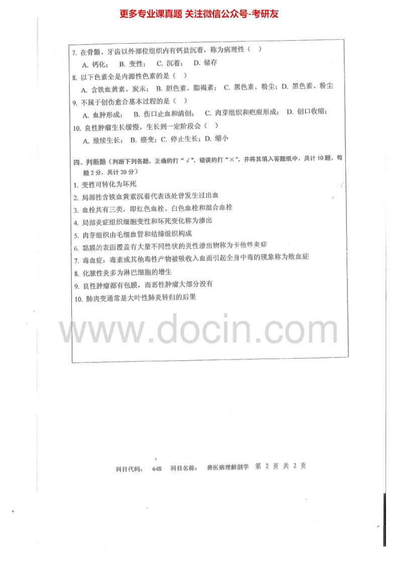 扬州大学648兽医病理解剖学2014-2015考研真题汇编.Image.Marked猴哥6个月前发布关注私信0.88MB4页06549扬州大学648兽医病理解剖学2014-2015考研真题汇编.Image.Marked此内容为免费资源,请登录后查看¥0 登录查看免费资源 第1页 / 共4页 第2页 / 共4页 第3页 / 共4页 该文档为免费文档,您可直接下载完整版进行阅读 © 版权声明文章版权归作者所有,未经允许请勿转载。THE END考研专业课 喜欢就支持一下吧点赞49赞赏 分享QQ空间微博QQ好友海报分享复制链接收藏