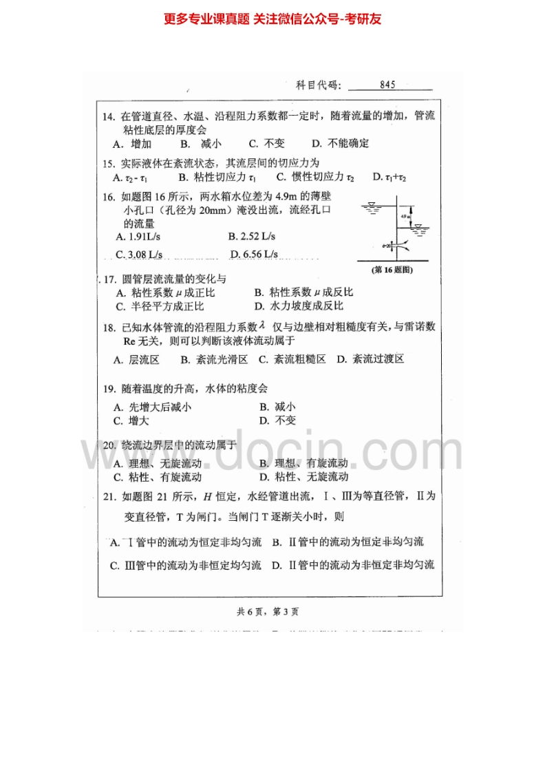扬州大学846水力学(环)2008、2014-2015考研真题汇编.Image.Marked猴哥6个月前发布关注私信3.36MB16页07727扬州大学846水力学(环)2008、2014-2015考研真题汇编.Image.Marked此内容为免费资源,请登录后查看¥0 登录查看免费资源 第1页 / 共16页 第2页 / 共16页 第3页 / 共16页 该文档为免费文档,您可直接下载完整版进行阅读 © 版权声明文章版权归作者所有,未经允许请勿转载。THE END《扬州大学》(846)给排水水力学考研资料考研专业课 喜欢就支持一下吧点赞27赞赏 分享QQ空间微博QQ好友海报分享复制链接收藏