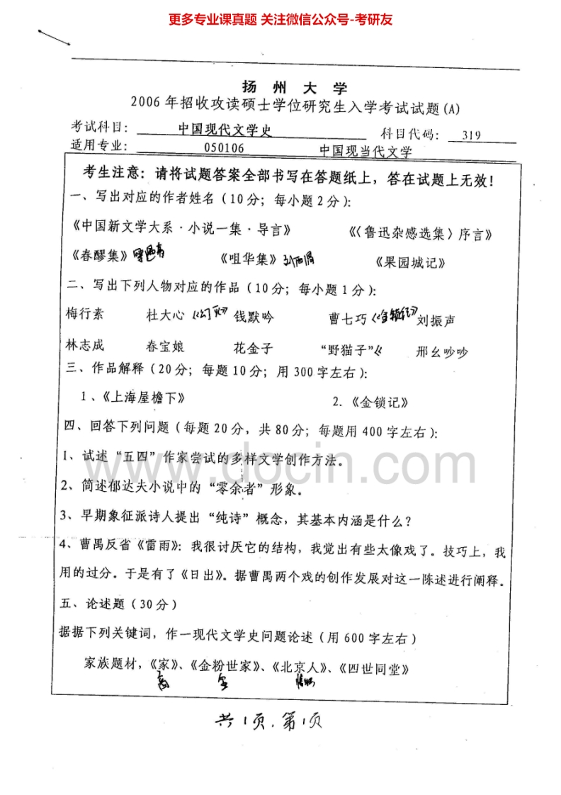 扬州大学中国现代文学史(2005-2007)考研真题汇编.Image.Marked猴哥6个月前发布关注私信0.82MB3页08651扬州大学中国现代文学史(2005-2007)考研真题汇编.Image.Marked此内容为免费资源,请登录后查看¥0 登录查看免费资源 第1页 / 共3页 第2页 / 共3页 第3页 / 共3页 已完成全部阅读,共3页 © 版权声明文章版权归作者所有,未经允许请勿转载。THE END考研专业课 喜欢就支持一下吧点赞51赞赏 分享QQ空间微博QQ好友海报分享复制链接收藏