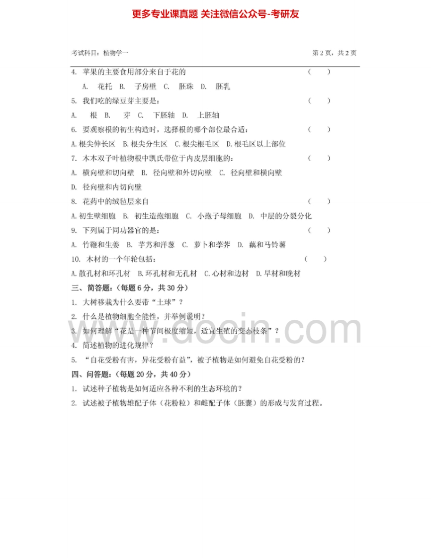 浙江农林大学621植物学一2013-2014考研真题汇编.Image.Marked猴哥6个月前发布关注私信0.47MB4页05930浙江农林大学621植物学一2013-2014考研真题汇编.Image.Marked此内容为免费资源,请登录后查看¥0 登录查看免费资源 第1页 / 共4页 第2页 / 共4页 第3页 / 共4页 该文档为免费文档,您可直接下载完整版进行阅读 © 版权声明文章版权归作者所有,未经允许请勿转载。THE END考研专业课 喜欢就支持一下吧点赞30赞赏 分享QQ空间微博QQ好友海报分享复制链接收藏