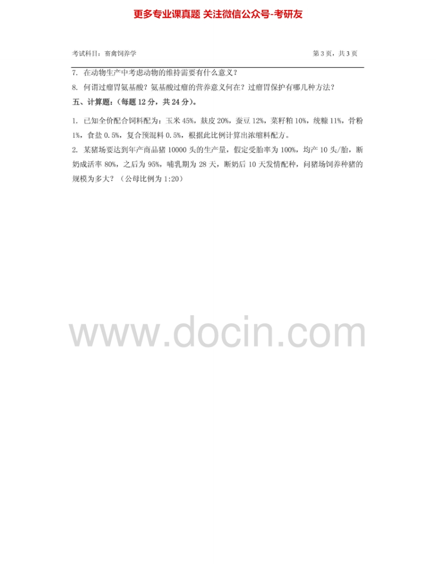 浙江农林大学903畜禽饲养学2013-2014考研真题汇编.Image.Marked猴哥6个月前发布关注私信0.77MB7页05829浙江农林大学903畜禽饲养学2013-2014考研真题汇编.Image.Marked此内容为免费资源,请登录后查看¥0 登录查看免费资源 第1页 / 共7页 第2页 / 共7页 第3页 / 共7页 该文档为免费文档,您可直接下载完整版进行阅读 © 版权声明文章版权归作者所有,未经允许请勿转载。THE END考研专业课 喜欢就支持一下吧点赞29赞赏 分享QQ空间微博QQ好友海报分享复制链接收藏