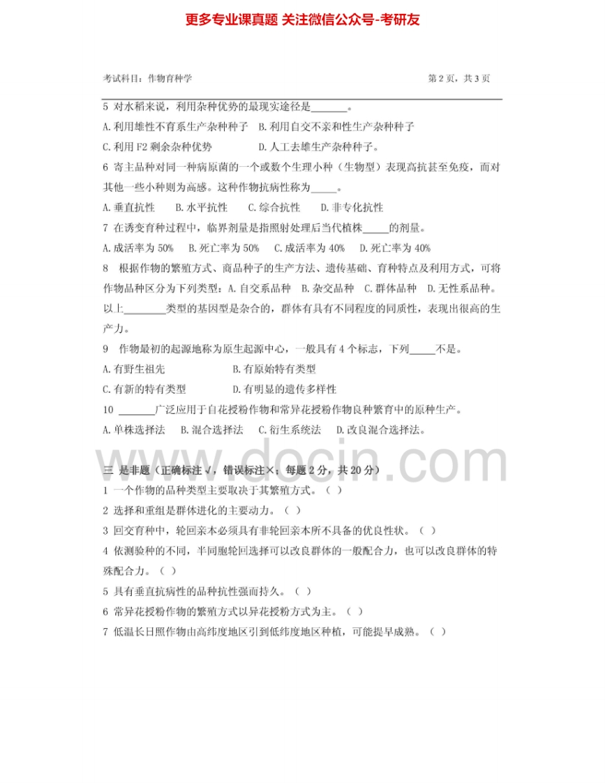 浙江农林大学825作物育种学2012、2014其中2012有答案考研真题汇编.Image.Marked猴哥6个月前发布关注私信1.59MB12页07355浙江农林大学825作物育种学2012、2014其中2012有答案考研真题汇编.Image.Marked此内容为免费资源,请登录后查看¥0 登录查看免费资源 第1页 / 共12页 第2页 / 共12页 第3页 / 共12页 该文档为免费文档,您可直接下载完整版进行阅读 © 版权声明文章版权归作者所有,未经允许请勿转载。THE END《浙江农林大学》(825)作物育种学与种子学考研资料考研专业课 喜欢就支持一下吧点赞55赞赏 分享QQ空间微博QQ好友海报分享复制链接收藏