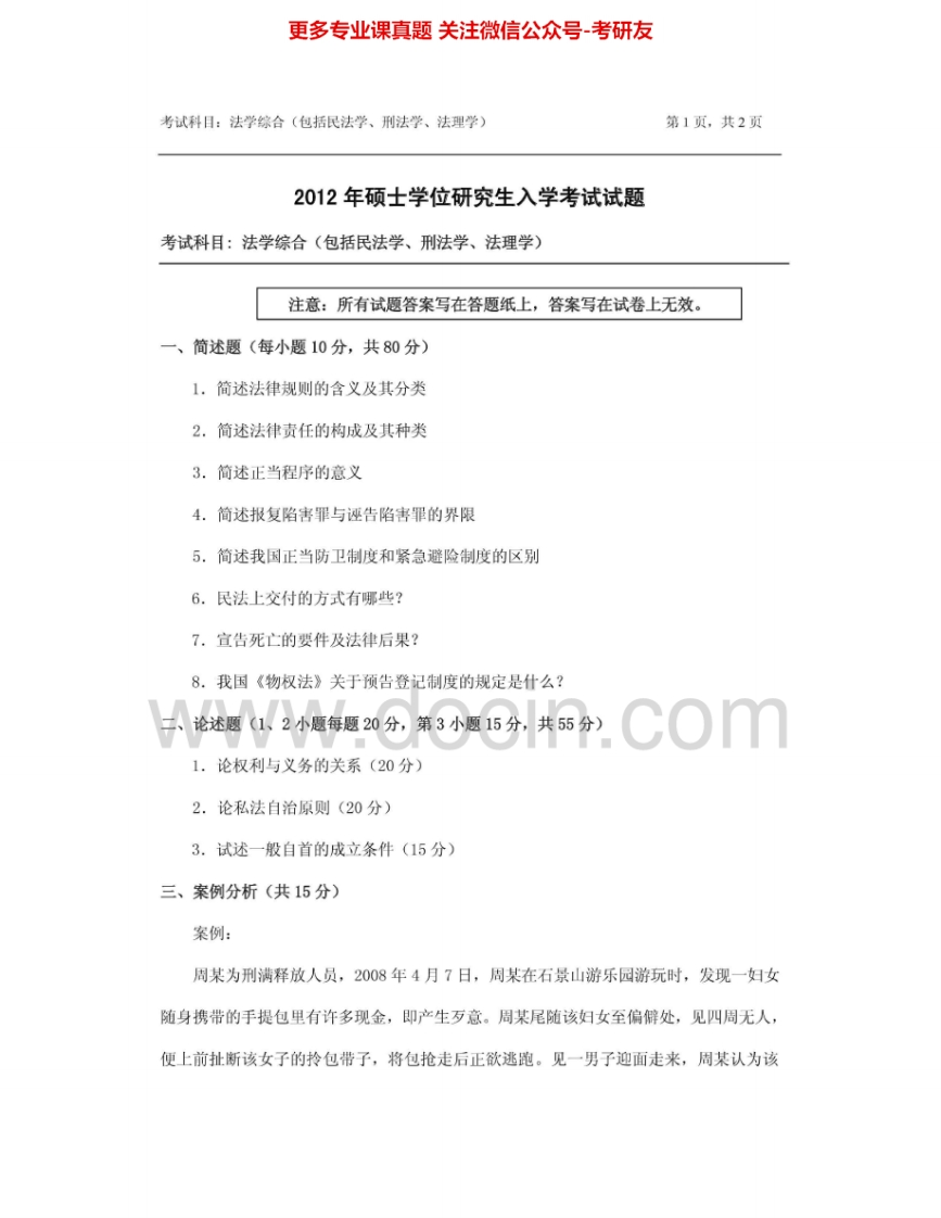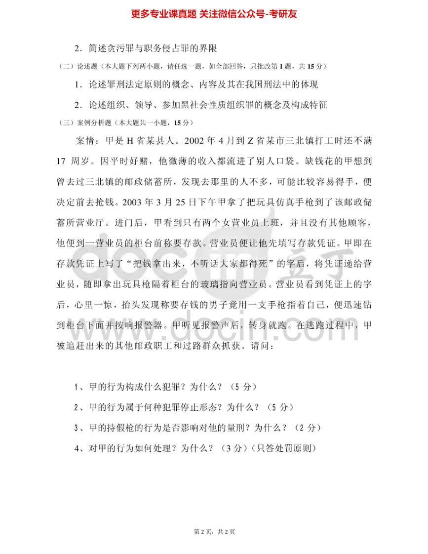 浙江农林大学840法学综合(包括法理学、民法学、刑法学)2010、2012-2015其中2012有答案考研真题汇编.Image.Marked猴哥6个月前发布关注私信2.61MB18页03851浙江农林大学840法学综合(包括法理学、民法学、刑法学)2010、2012-2015其中2012有答案考研真题汇编.Image.Marked此内容为免费资源,请登录后查看¥0 登录查看免费资源 第1页 / 共18页 第2页 / 共18页 第3页 / 共18页 该文档为免费文档,您可直接下载完整版进行阅读 © 版权声明文章版权归作者所有,未经允许请勿转载。THE END《浙江农林大学》(840)法学综合二(民法总论、刑法总论)考研资料考研专业课 喜欢就支持一下吧点赞51赞赏 分享QQ空间微博QQ好友海报分享复制链接收藏