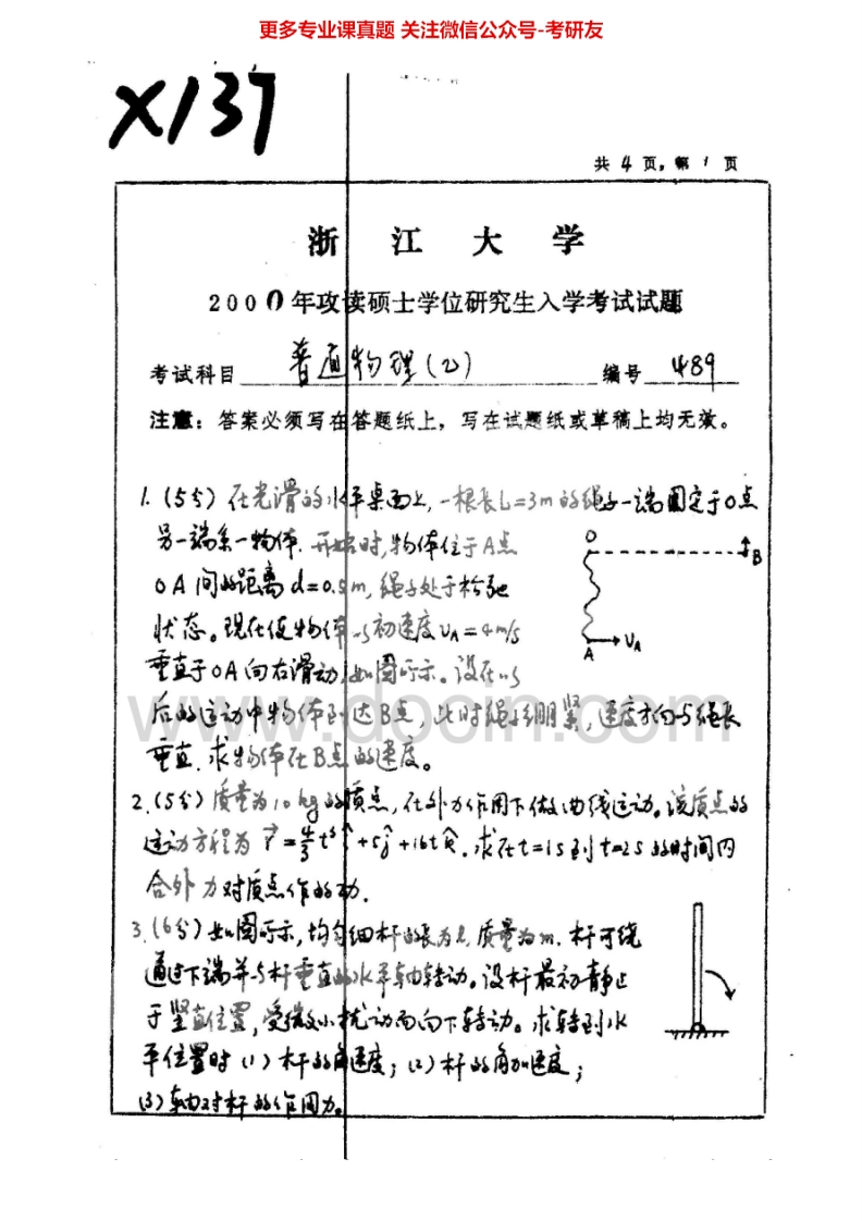 浙江大学820普通物理1999-2007考研真题汇编猴哥6个月前发布关注私信17.37MB29页06328浙江大学820普通物理1999-2007考研真题汇编此内容为免费资源,请登录后查看¥0 登录查看免费资源 第1页 / 共29页 第2页 / 共29页 第3页 / 共29页 该文档为免费文档,您可直接下载完整版进行阅读 © 版权声明文章版权归作者所有,未经允许请勿转载。THE END《浙江大学》(820)普通物理考研资料考研专业课 喜欢就支持一下吧点赞28赞赏 分享QQ空间微博QQ好友海报分享复制链接收藏