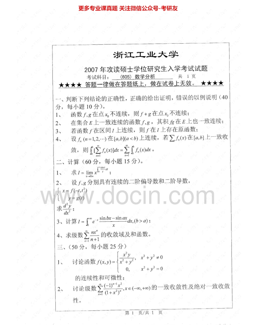 浙江工业大学665数学分析2007-2012考研真题汇编.Image.Marked猴哥6个月前发布关注私信1.75MB6页07842浙江工业大学665数学分析2007-2012考研真题汇编.Image.Marked此内容为免费资源,请登录后查看¥0 登录查看免费资源 第1页 / 共6页 第2页 / 共6页 第3页 / 共6页 该文档为免费文档,您可直接下载完整版进行阅读 © 版权声明文章版权归作者所有,未经允许请勿转载。THE END考研专业课 喜欢就支持一下吧点赞42赞赏 分享QQ空间微博QQ好友海报分享复制链接收藏