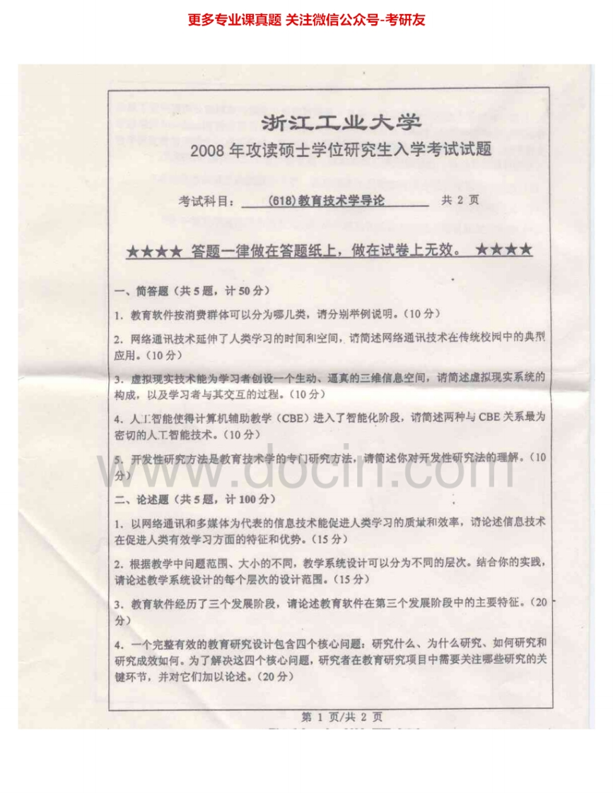 浙江工业大学633教育技术基础综合(I)2007-2012考研真题汇编.Image.Marked猴哥6个月前发布关注私信3.78MB11页04726浙江工业大学633教育技术基础综合(I)2007-2012考研真题汇编.Image.Marked此内容为免费资源,请登录后查看¥0 登录查看免费资源 第1页 / 共11页 第2页 / 共11页 第3页 / 共11页 该文档为免费文档,您可直接下载完整版进行阅读 © 版权声明文章版权归作者所有,未经允许请勿转载。THE END《浙江工业大学》(633)教育技术基础综合(I)考研资料考研专业课 喜欢就支持一下吧点赞26赞赏 分享QQ空间微博QQ好友海报分享复制链接收藏