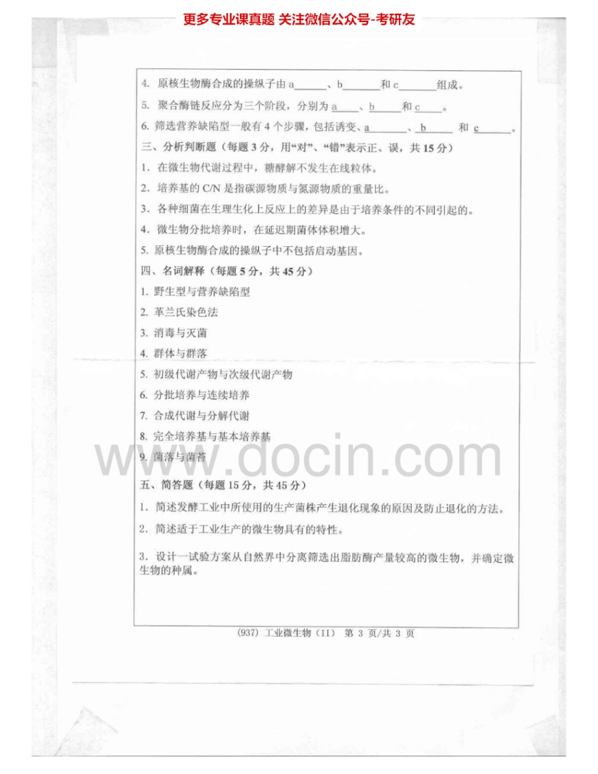 浙江工业大学937工业微生物(Ⅱ)2011-2012考研真题汇编.Image.Marked猴哥6个月前发布关注私信1.03MB6页03958浙江工业大学937工业微生物(Ⅱ)2011-2012考研真题汇编.Image.Marked此内容为免费资源,请登录后查看¥0 登录查看免费资源 第1页 / 共6页 第2页 / 共6页 第3页 / 共6页 该文档为免费文档,您可直接下载完整版进行阅读 © 版权声明文章版权归作者所有,未经允许请勿转载。THE END《浙江工业大学》(937)工业微生物(Ⅱ)考研资料考研专业课 喜欢就支持一下吧点赞58赞赏 分享QQ空间微博QQ好友海报分享复制链接收藏