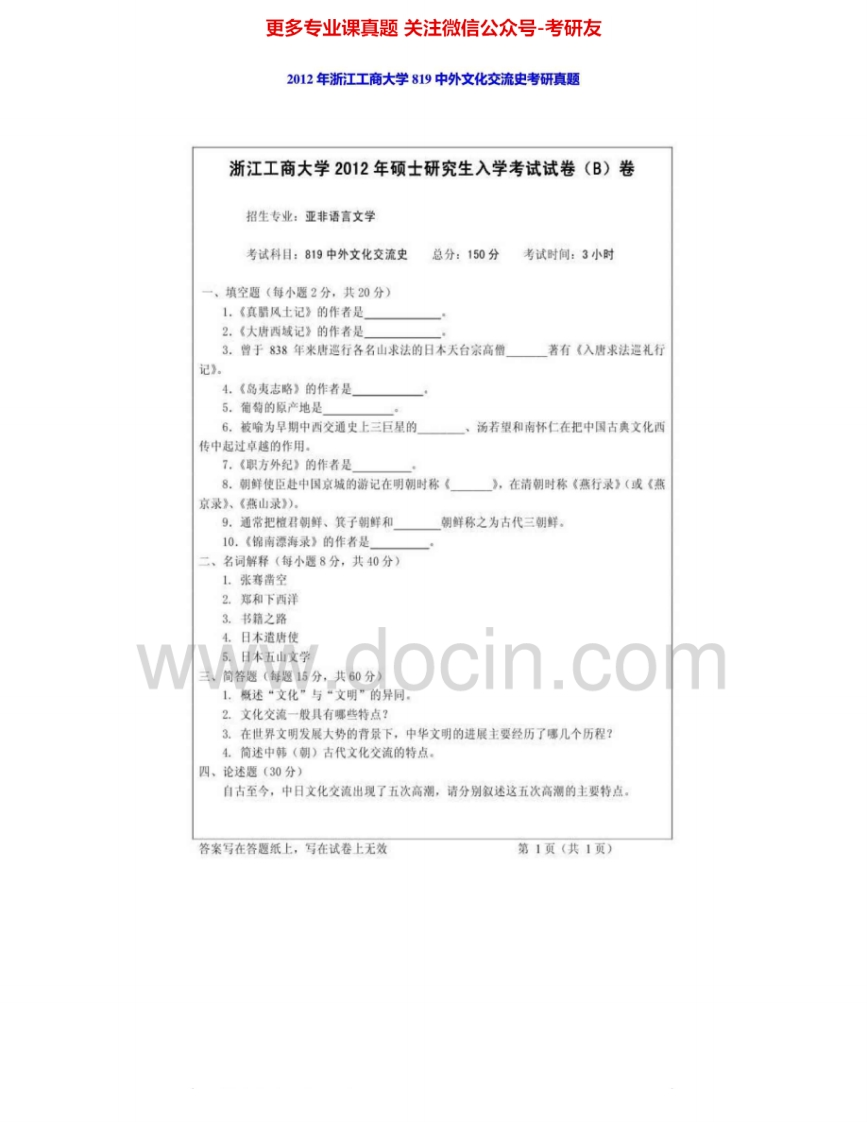 浙江工商大学819中外文化交流史2012-2015考研真题汇编.Image.Marked猴哥6个月前发布关注私信0.67MB4页03261浙江工商大学819中外文化交流史2012-2015考研真题汇编.Image.Marked此内容为免费资源,请登录后查看¥0 登录查看免费资源 第1页 / 共4页 第2页 / 共4页 第3页 / 共4页 该文档为免费文档,您可直接下载完整版进行阅读 © 版权声明文章版权归作者所有,未经允许请勿转载。THE END考研专业课 喜欢就支持一下吧点赞61赞赏 分享QQ空间微博QQ好友海报分享复制链接收藏