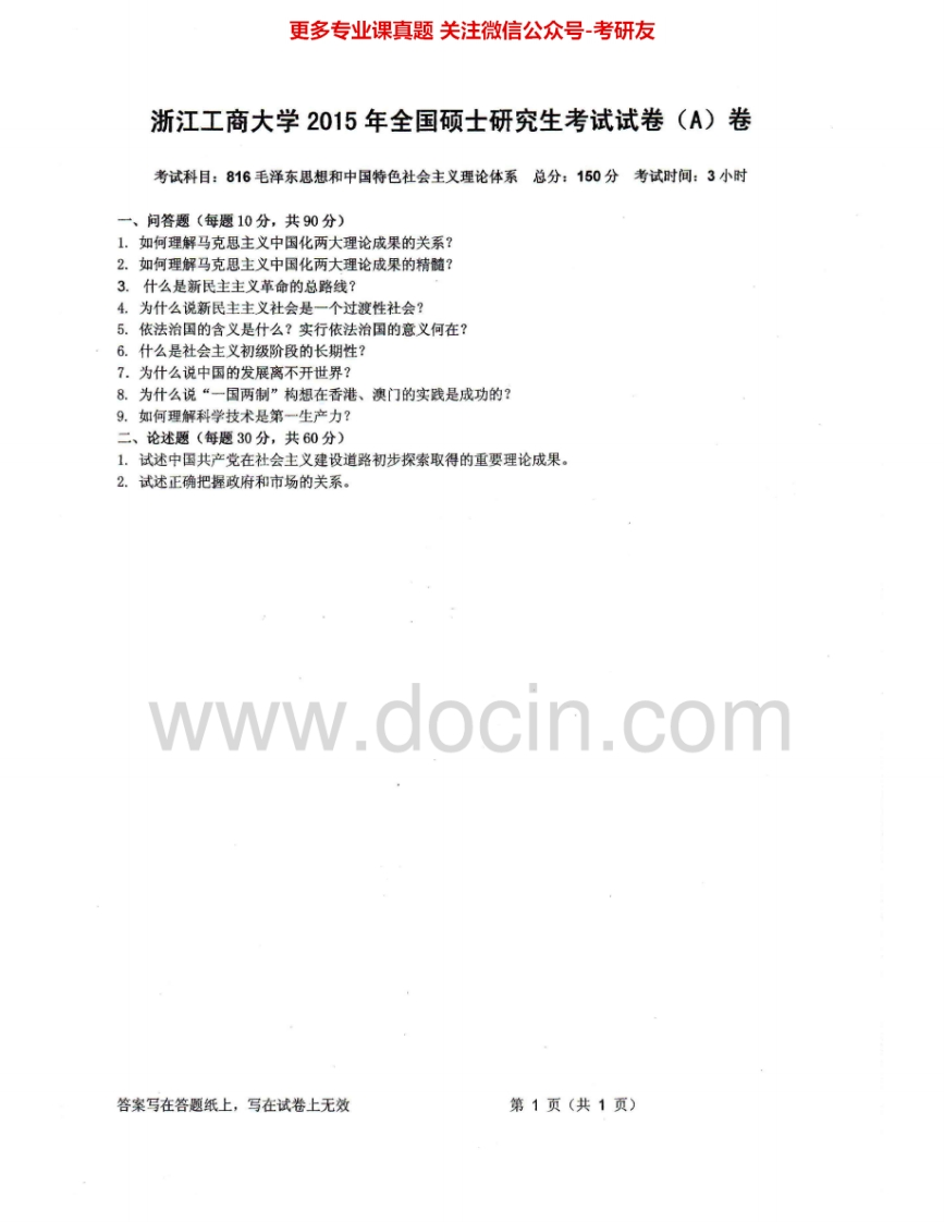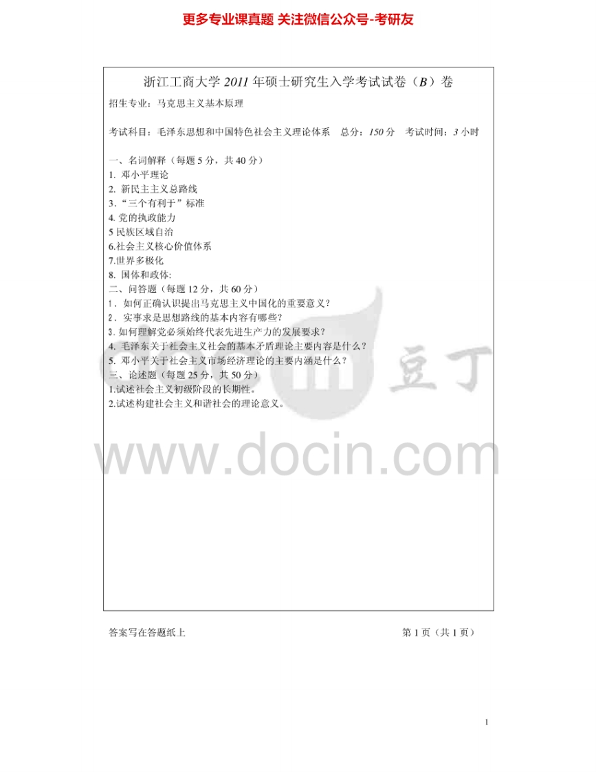浙江工商大学816毛泽东思想和中国特色社会主义理论体系2010-2011、2015考研真题汇编.Image.Marked猴哥6个月前发布关注私信0.77MB3页03559浙江工商大学816毛泽东思想和中国特色社会主义理论体系2010-2011、2015考研真题汇编.Image.Marked此内容为免费资源,请登录后查看¥0 登录查看免费资源 第1页 / 共3页 第2页 / 共3页 第3页 / 共3页 已完成全部阅读,共3页 © 版权声明文章版权归作者所有,未经允许请勿转载。THE END《浙江工商大学》(816)毛泽东思想和中国特色社会主义理论体系考研资料考研专业课 喜欢就支持一下吧点赞59赞赏 分享QQ空间微博QQ好友海报分享复制链接收藏