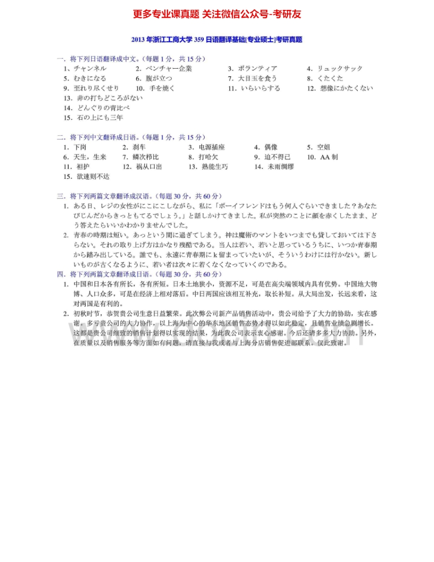 浙江工商大学359日语翻译基础2011-2015考研真题汇编.Image.Marked猴哥6个月前发布关注私信2.07MB7页09810浙江工商大学359日语翻译基础2011-2015考研真题汇编.Image.Marked此内容为免费资源,请登录后查看¥0 登录查看免费资源 第1页 / 共7页 第2页 / 共7页 第3页 / 共7页 该文档为免费文档,您可直接下载完整版进行阅读 © 版权声明文章版权归作者所有,未经允许请勿转载。THE END《浙江工商大学》(359)日语翻译基础考研资料考研专业课 喜欢就支持一下吧点赞10赞赏 分享QQ空间微博QQ好友海报分享复制链接收藏