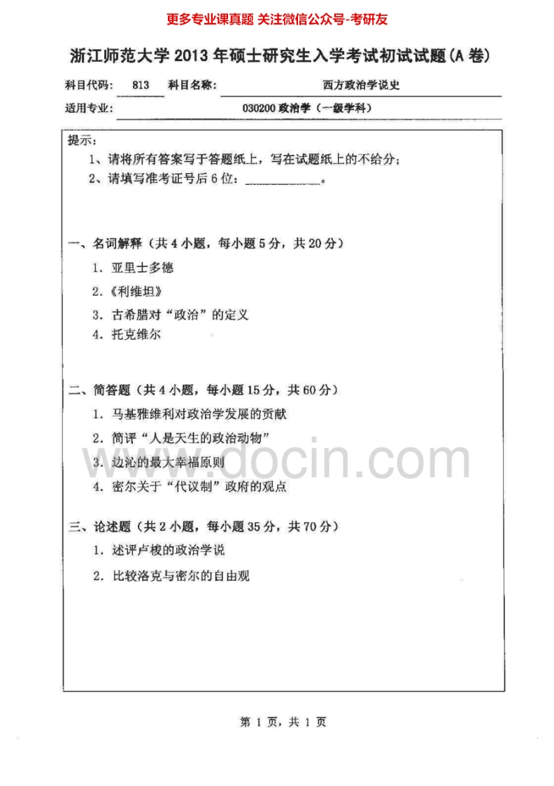 浙江师范大学813西方政治学说史2012-2013考研真题汇编猴哥6个月前发布关注私信0.27MB2页03546浙江师范大学813西方政治学说史2012-2013考研真题汇编此内容为免费资源,请登录后查看¥0 登录查看免费资源 第1页 / 共2页 第2页 / 共2页 已完成全部阅读,共2页 © 版权声明文章版权归作者所有,未经允许请勿转载。THE END考研专业课 喜欢就支持一下吧点赞46赞赏 分享QQ空间微博QQ好友海报分享复制链接收藏