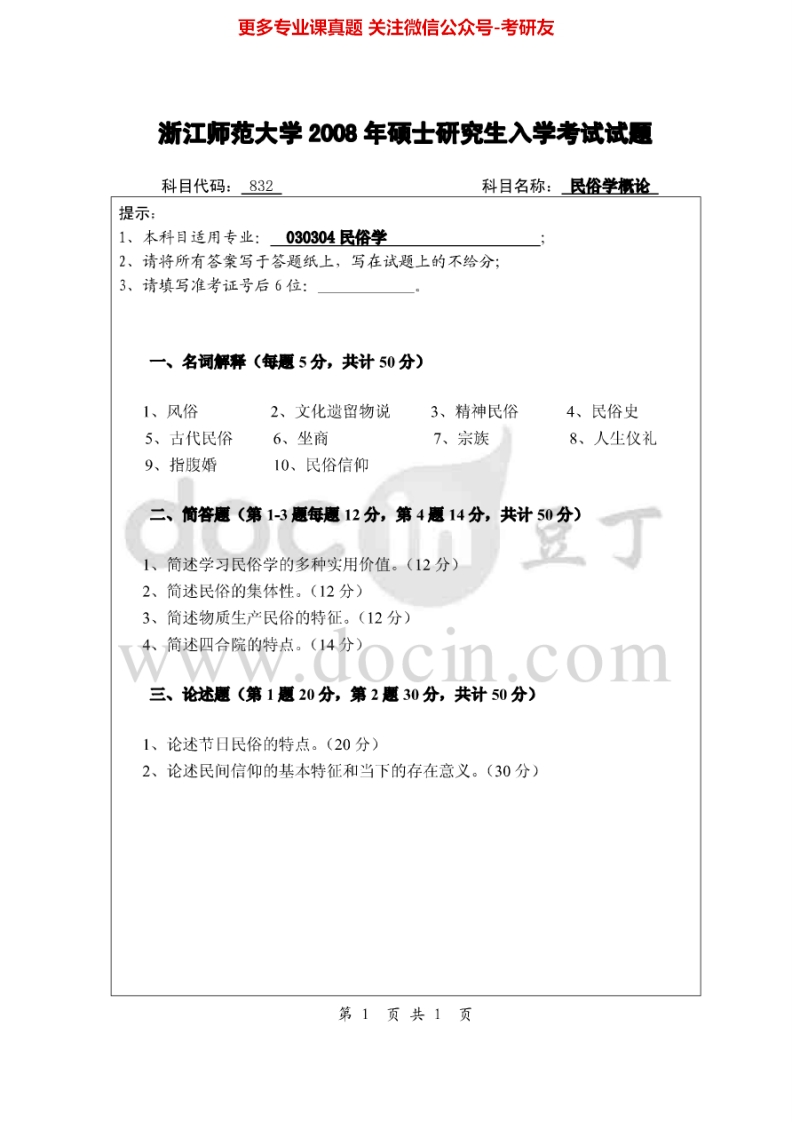 浙江师范大学816民俗学概论2007-2013考研真题汇编猴哥6个月前发布关注私信0.48MB7页05143浙江师范大学816民俗学概论2007-2013考研真题汇编此内容为免费资源,请登录后查看¥0 登录查看免费资源 第1页 / 共7页 第2页 / 共7页 第3页 / 共7页 该文档为免费文档,您可直接下载完整版进行阅读 © 版权声明文章版权归作者所有,未经允许请勿转载。THE END考研专业课 喜欢就支持一下吧点赞43赞赏 分享QQ空间微博QQ好友海报分享复制链接收藏