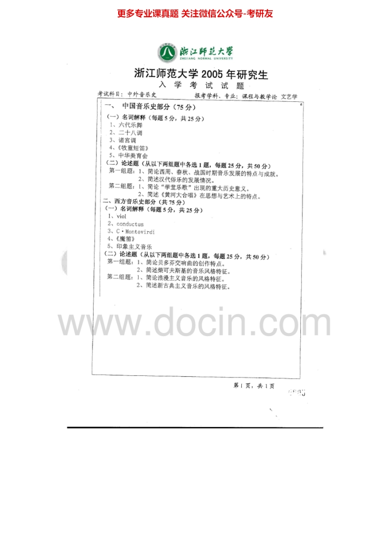 浙江师范大学661中外音乐史2004-2006、2008-2013考研真题汇编猴哥6个月前发布关注私信1.50MB18页09738浙江师范大学661中外音乐史2004-2006、2008-2013考研真题汇编此内容为免费资源,请登录后查看¥0 登录查看免费资源 第1页 / 共18页 第2页 / 共18页 第3页 / 共18页 该文档为免费文档,您可直接下载完整版进行阅读 © 版权声明文章版权归作者所有,未经允许请勿转载。THE END考研专业课 喜欢就支持一下吧点赞38赞赏 分享QQ空间微博QQ好友海报分享复制链接收藏