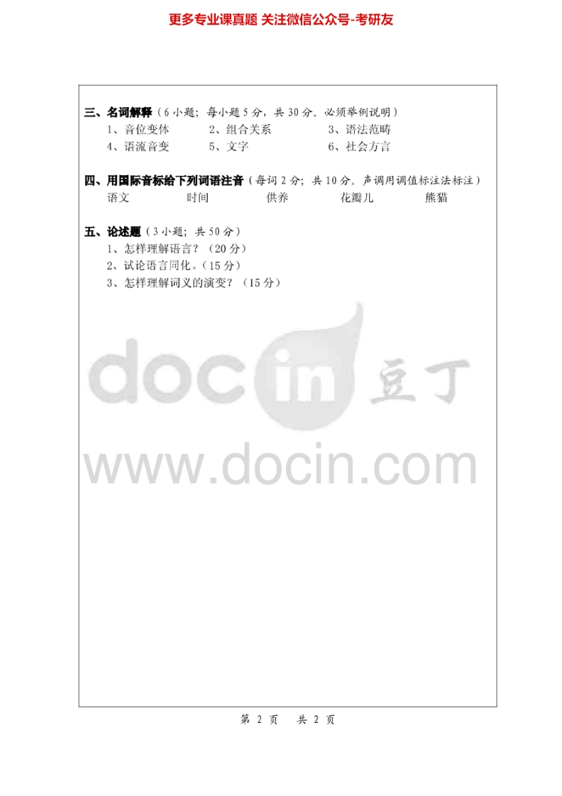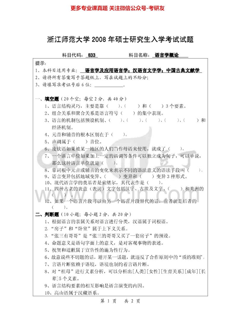 浙江师范大学833语言学概论2004、2008-2013考研真题汇编猴哥6个月前发布关注私信1.46MB11页05858浙江师范大学833语言学概论2004、2008-2013考研真题汇编此内容为免费资源,请登录后查看¥0 登录查看免费资源 第1页 / 共11页 第2页 / 共11页 第3页 / 共11页 该文档为免费文档,您可直接下载完整版进行阅读 © 版权声明文章版权归作者所有,未经允许请勿转载。THE END考研专业课 喜欢就支持一下吧点赞58赞赏 分享QQ空间微博QQ好友海报分享复制链接收藏