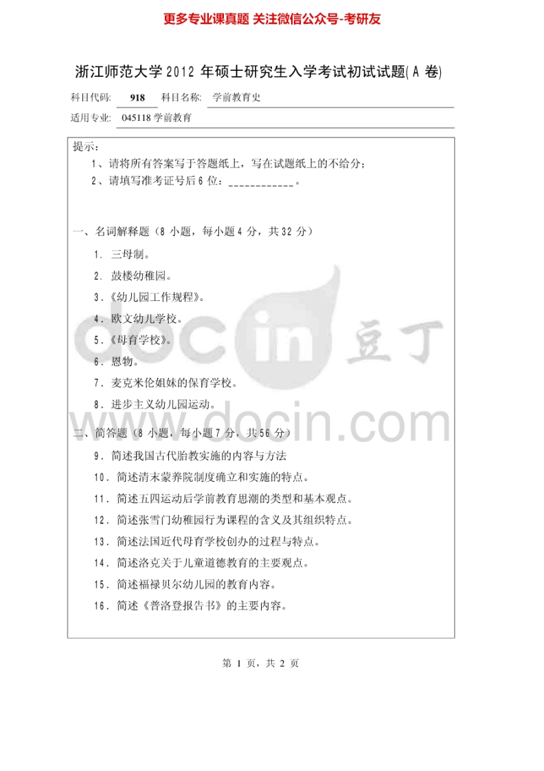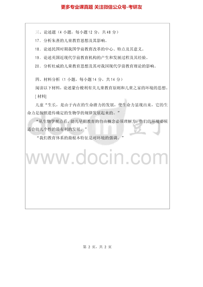 浙江师范大学918学前教育史2011-2013考研真题汇编猴哥6个月前发布关注私信0.62MB5页07543浙江师范大学918学前教育史2011-2013考研真题汇编此内容为免费资源,请登录后查看¥0 登录查看免费资源 第1页 / 共5页 第2页 / 共5页 第3页 / 共5页 该文档为免费文档,您可直接下载完整版进行阅读 © 版权声明文章版权归作者所有,未经允许请勿转载。THE END考研专业课 喜欢就支持一下吧点赞43赞赏 分享QQ空间微博QQ好友海报分享复制链接收藏