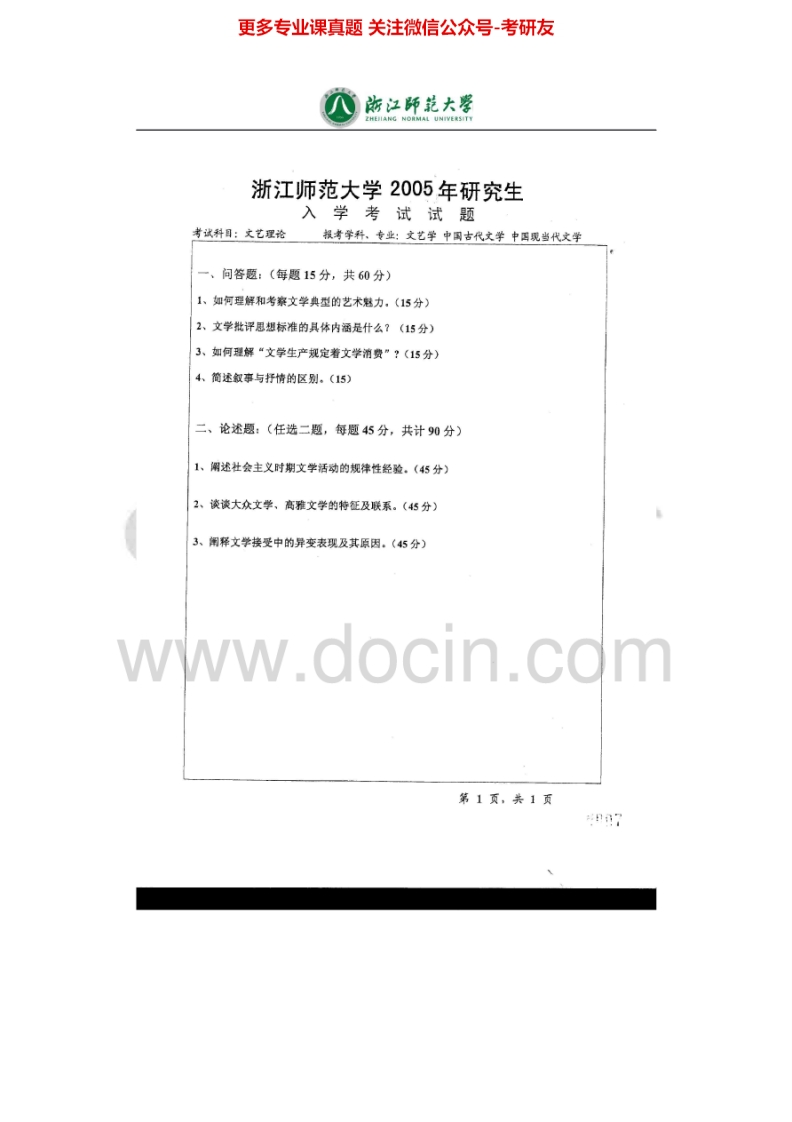 浙江师范大学文艺理论(2004-2006、2008-2013)考研真题汇编猴哥6个月前发布关注私信1.07MB11页03343浙江师范大学文艺理论(2004-2006、2008-2013)考研真题汇编此内容为免费资源,请登录后查看¥0 登录查看免费资源 第1页 / 共11页 第2页 / 共11页 第3页 / 共11页 该文档为免费文档,您可直接下载完整版进行阅读 © 版权声明文章版权归作者所有,未经允许请勿转载。THE END考研专业课 喜欢就支持一下吧点赞43赞赏 分享QQ空间微博QQ好友海报分享复制链接收藏