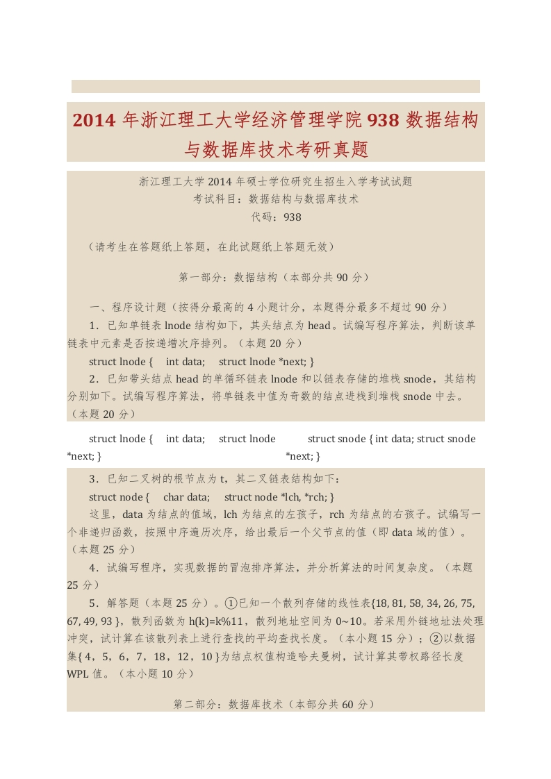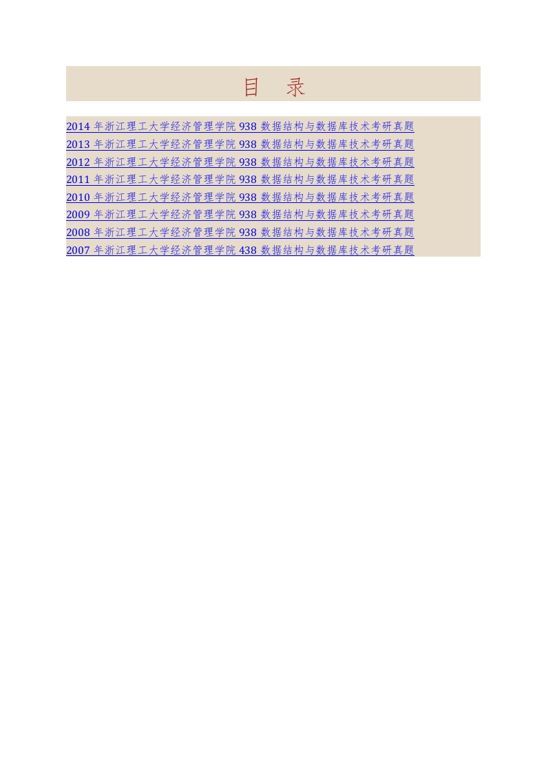 浙江理工大学经济管理学院938数据结构与数据库技术历年考研真题汇编猴哥6个月前发布关注私信2.65MB47页06912浙江理工大学经济管理学院938数据结构与数据库技术历年考研真题汇编此内容为免费资源,请登录后查看¥0 登录查看免费资源 第1页 / 共47页 第2页 / 共47页 第3页 / 共47页 该文档为免费文档,您可直接下载完整版进行阅读 © 版权声明文章版权归作者所有,未经允许请勿转载。THE END考研专业课 喜欢就支持一下吧点赞12赞赏 分享QQ空间微博QQ好友海报分享复制链接收藏