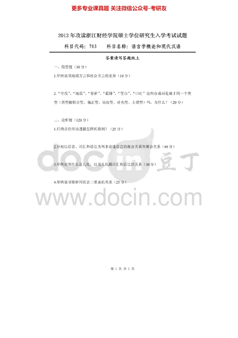 浙江财经大学703语言学概论和现代汉语2012-2015考研真题汇编.Image.Marked-学习资源网 - 分享优质学习资料