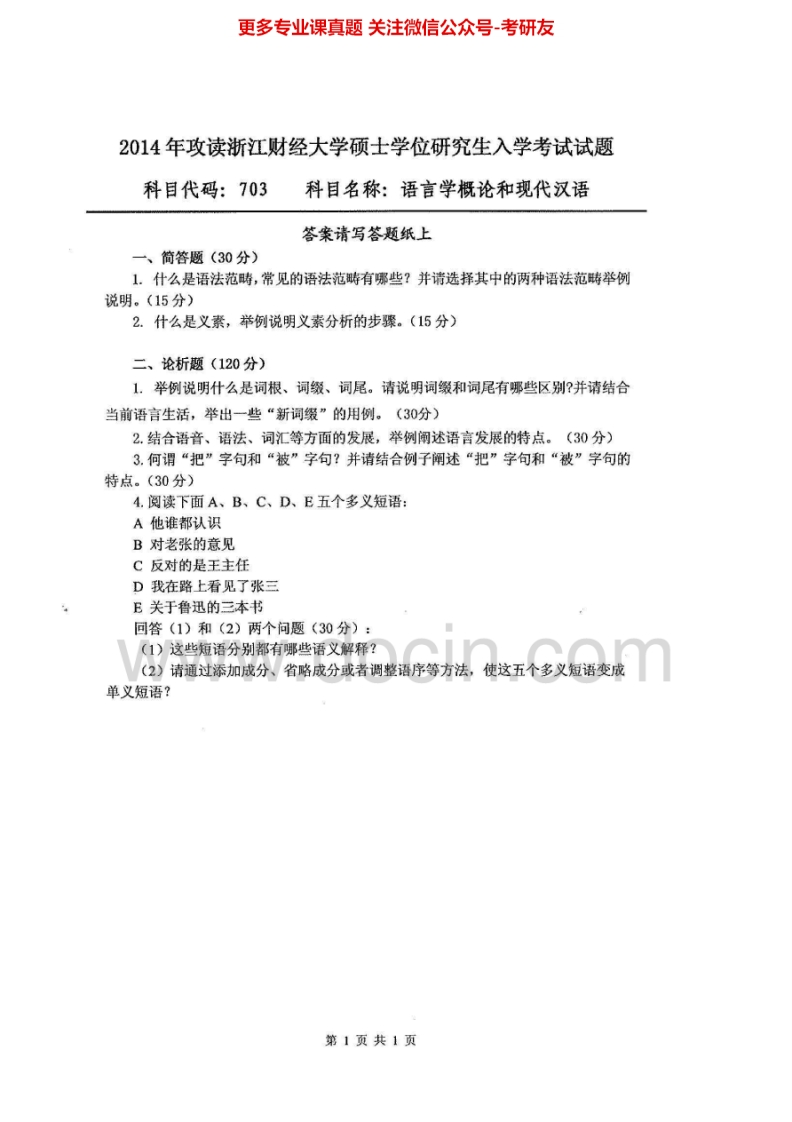 浙江财经大学703语言学概论和现代汉语2012-2015考研真题汇编.Image.Marked