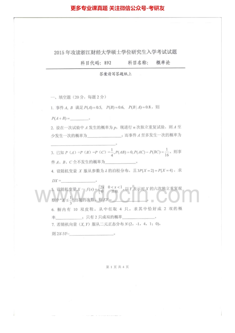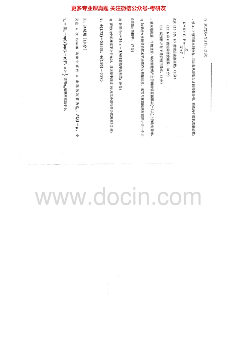 浙江财经大学892概率论2014-2015考研真题汇编.Image.Marked猴哥6个月前发布关注私信0.90MB6页08140浙江财经大学892概率论2014-2015考研真题汇编.Image.Marked此内容为免费资源,请登录后查看¥0 登录查看免费资源 第1页 / 共6页 第2页 / 共6页 第3页 / 共6页 该文档为免费文档,您可直接下载完整版进行阅读 © 版权声明文章版权归作者所有,未经允许请勿转载。THE END《浙江财经大学》(892)概率论考研资料考研专业课 喜欢就支持一下吧点赞40赞赏 分享QQ空间微博QQ好友海报分享复制链接收藏