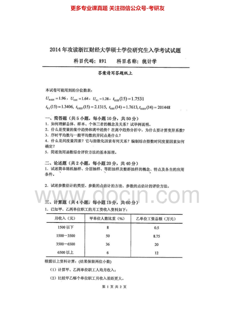 浙江财经大学891统计学2012-2015其中2013有答案考研真题汇编.Image.Marked-学习资源网 - 分享优质学习资料