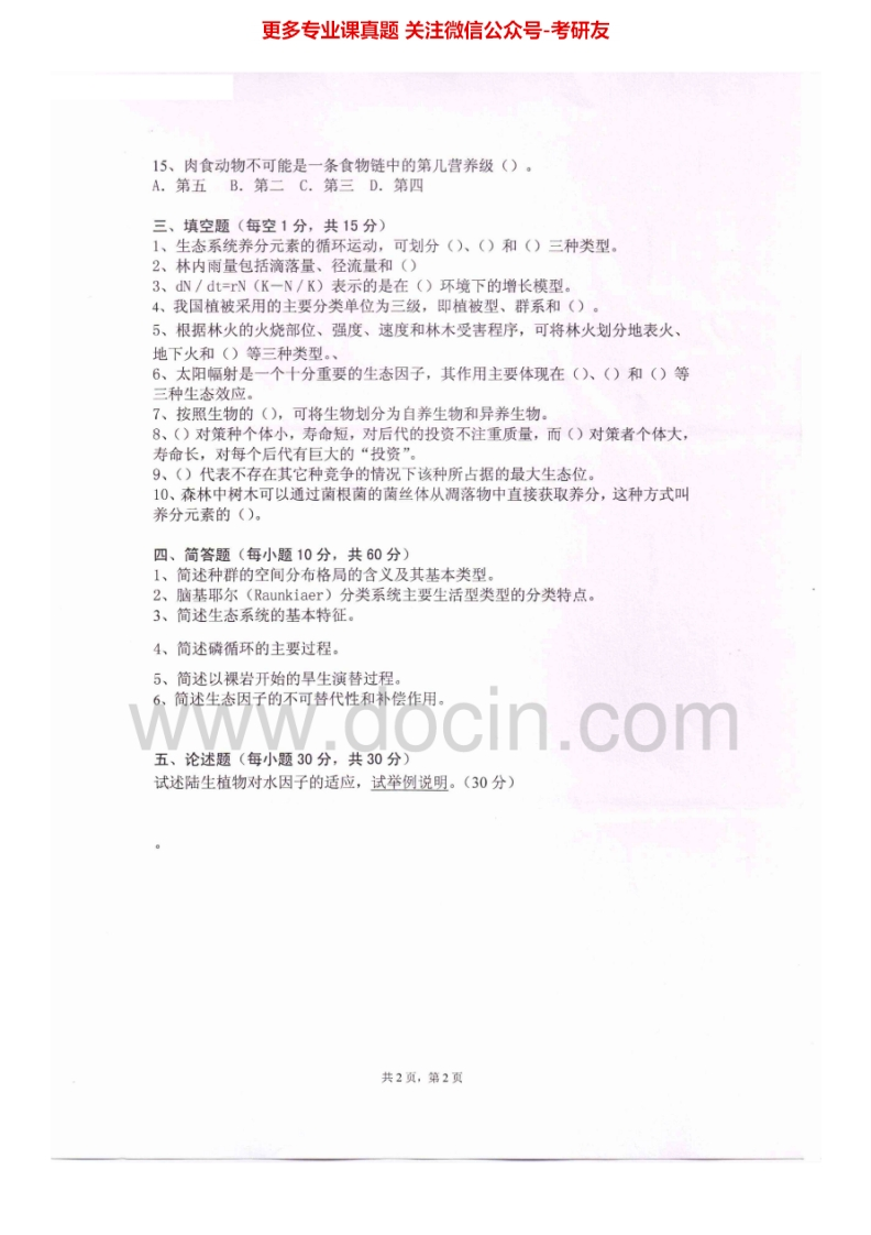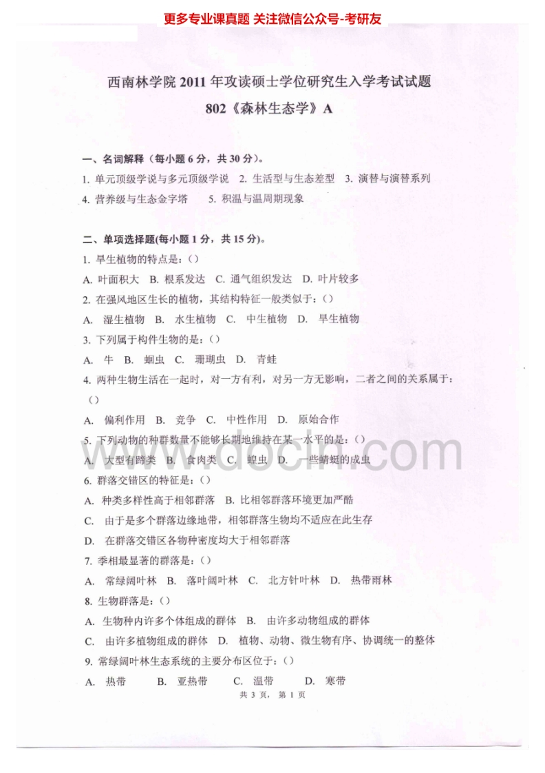 西南林业大学702森林生态学2010-2012考研真题汇编.Image.Marked_1猴哥6个月前发布关注私信2.87MB7页06939西南林业大学702森林生态学2010-2012考研真题汇编.Image.Marked_1此内容为免费资源,请登录后查看¥0 登录查看免费资源 第1页 / 共7页 第2页 / 共7页 第3页 / 共7页 该文档为免费文档,您可直接下载完整版进行阅读 © 版权声明文章版权归作者所有,未经允许请勿转载。THE END《西南林业大学》(702)植物学考研资料考研专业课 喜欢就支持一下吧点赞39赞赏 分享QQ空间微博QQ好友海报分享复制链接收藏
