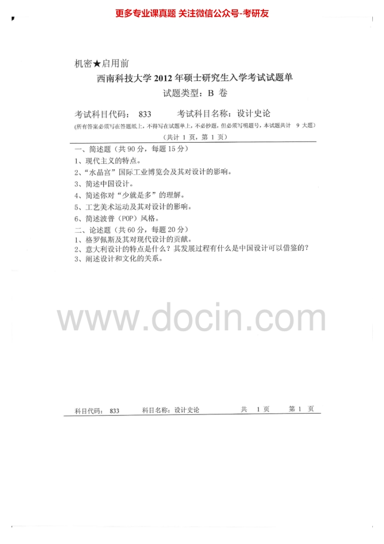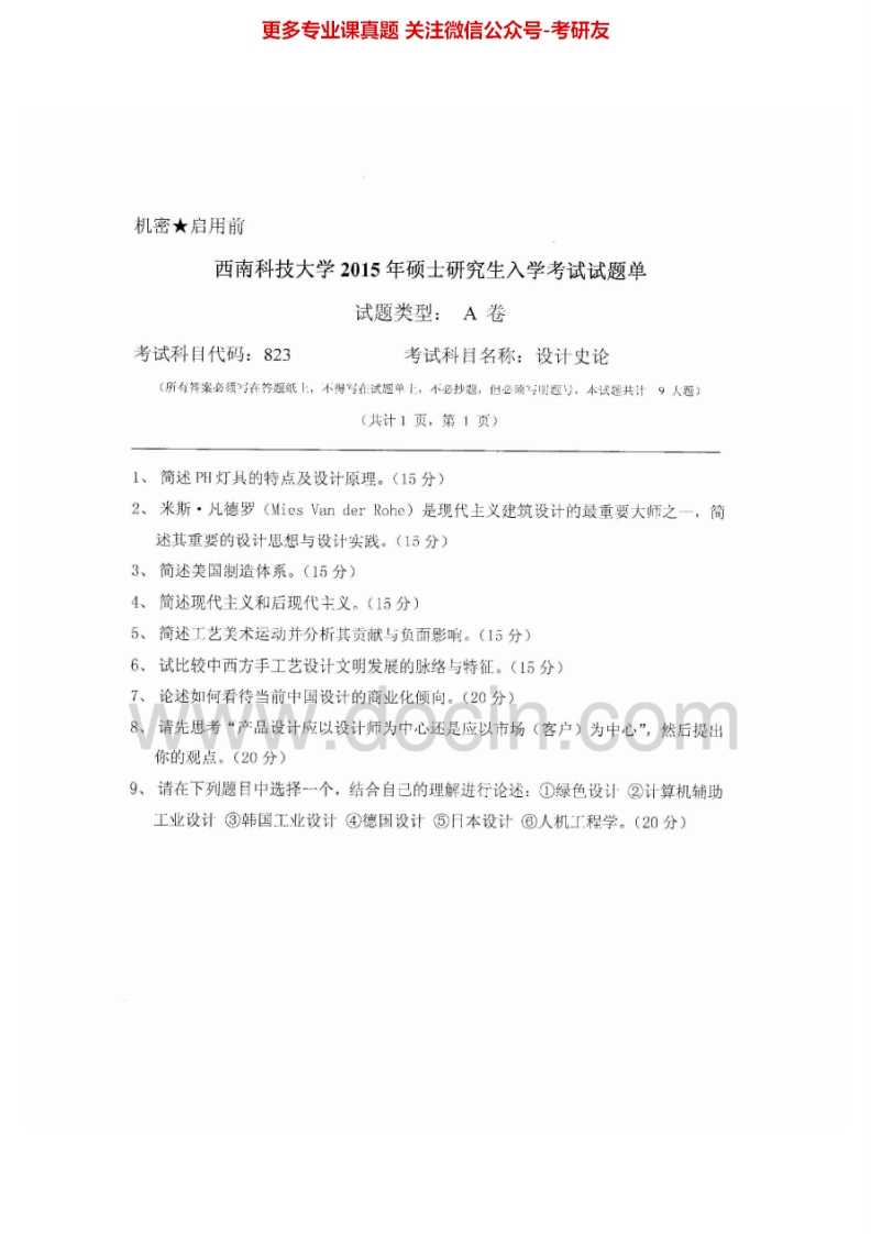 西南科技大学823设计史论2012、2015考研真题汇编.Image.Marked猴哥6个月前发布关注私信0.38MB3页06116西南科技大学823设计史论2012、2015考研真题汇编.Image.Marked此内容为免费资源,请登录后查看¥0 登录查看免费资源 第1页 / 共3页 第2页 / 共3页 第3页 / 共3页 已完成全部阅读,共3页 © 版权声明文章版权归作者所有,未经允许请勿转载。THE END考研专业课 喜欢就支持一下吧点赞16赞赏 分享QQ空间微博QQ好友海报分享复制链接收藏