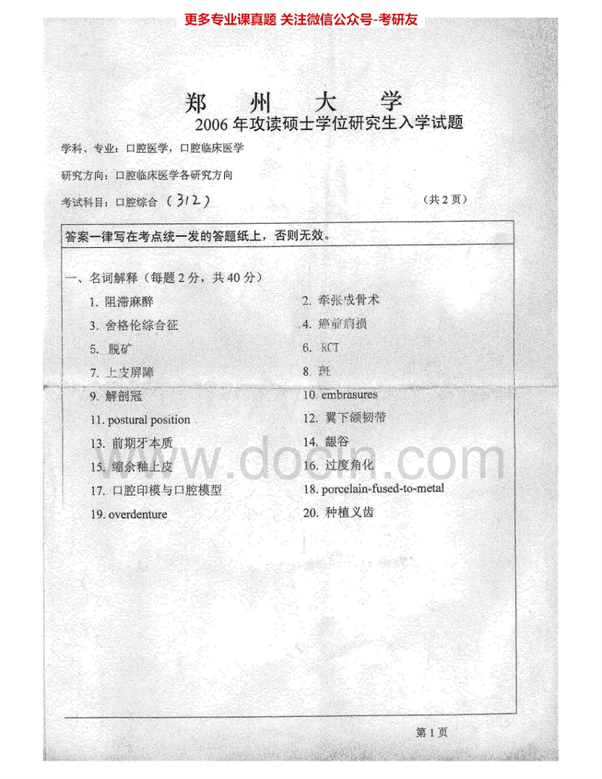 郑州大学730口腔综合(一)2005-2007考研真题汇编.Image.Marked猴哥6个月前发布关注私信4.63MB6页03455郑州大学730口腔综合(一)2005-2007考研真题汇编.Image.Marked此内容为免费资源,请登录后查看¥0 登录查看免费资源 第1页 / 共6页 第2页 / 共6页 第3页 / 共6页 该文档为免费文档,您可直接下载完整版进行阅读 © 版权声明文章版权归作者所有,未经允许请勿转载。THE END考研专业课 喜欢就支持一下吧点赞55赞赏 分享QQ空间微博QQ好友海报分享复制链接收藏