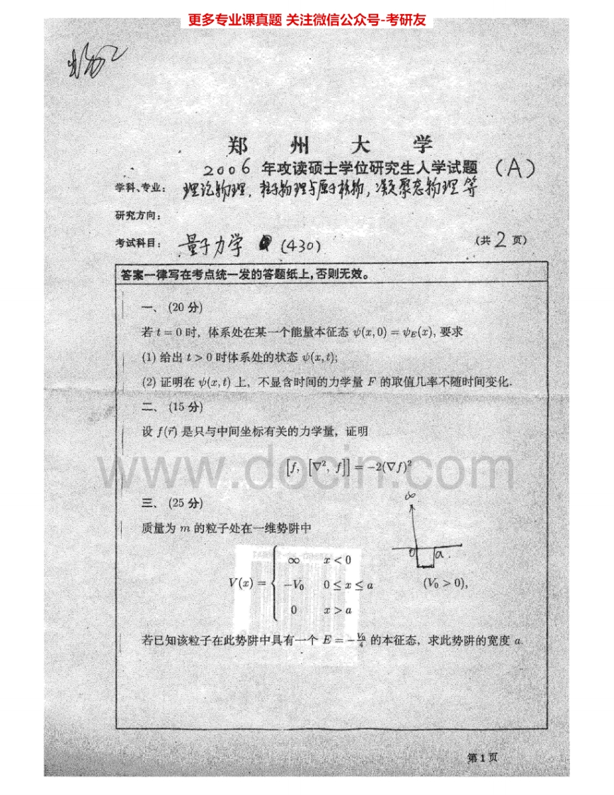 郑州大学650量子力学2005-2008考研真题汇编.Image.Marked猴哥6个月前发布关注私信4.54MB11页04933郑州大学650量子力学2005-2008考研真题汇编.Image.Marked此内容为免费资源,请登录后查看¥0 登录查看免费资源 第1页 / 共11页 第2页 / 共11页 第3页 / 共11页 该文档为免费文档,您可直接下载完整版进行阅读 © 版权声明文章版权归作者所有,未经允许请勿转载。THE END《郑州大学》(650)量子力学考研资料考研专业课 喜欢就支持一下吧点赞33赞赏 分享QQ空间微博QQ好友海报分享复制链接收藏
