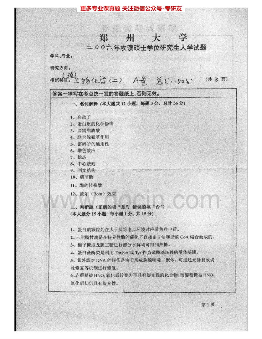 郑州大学664生物化学(二)2005-2007考研真题汇编.Image.Marked猴哥6个月前发布关注私信8.59MB8页09463郑州大学664生物化学(二)2005-2007考研真题汇编.Image.Marked此内容为免费资源,请登录后查看¥0 登录查看免费资源 第1页 / 共8页 第2页 / 共8页 第3页 / 共8页 该文档为免费文档,您可直接下载完整版进行阅读 © 版权声明文章版权归作者所有,未经允许请勿转载。THE END考研专业课 喜欢就支持一下吧点赞63赞赏 分享QQ空间微博QQ好友海报分享复制链接收藏