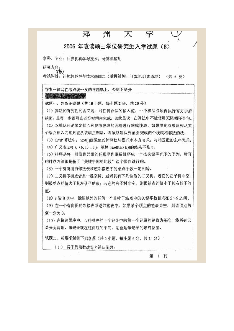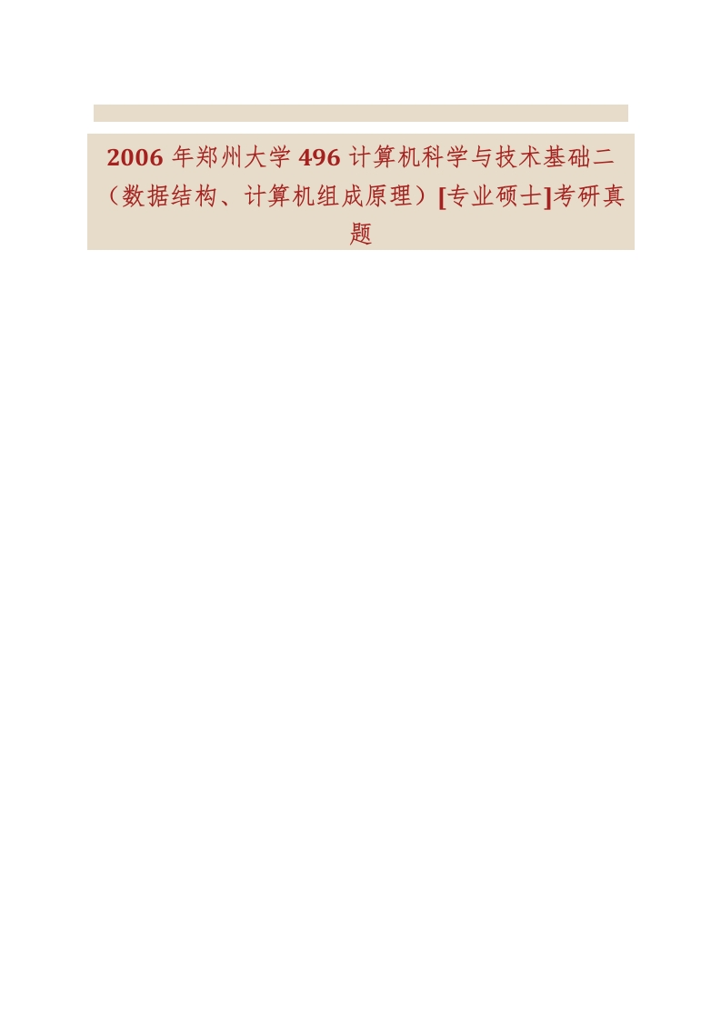 郑州大学944计算机技术专业基础综合(含数据结构计算机组成原理操作系统计算机网络)[专业硕士]历年考研真题汇编猴哥6个月前发布关注私信2.05MB29页09514郑州大学944计算机技术专业基础综合(含数据结构计算机组成原理操作系统计算机网络)[专业硕士]历年考研真题汇编此内容为免费资源,请登录后查看¥0 登录查看免费资源 第1页 / 共29页 第2页 / 共29页 第3页 / 共29页 该文档为免费文档,您可直接下载完整版进行阅读 © 版权声明文章版权归作者所有,未经允许请勿转载。THE END考研专业课 喜欢就支持一下吧点赞14赞赏 分享QQ空间微博QQ好友海报分享复制链接收藏