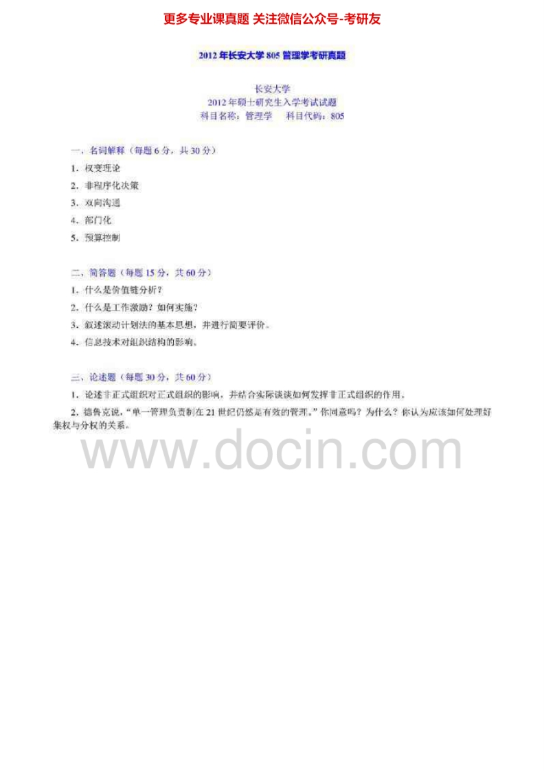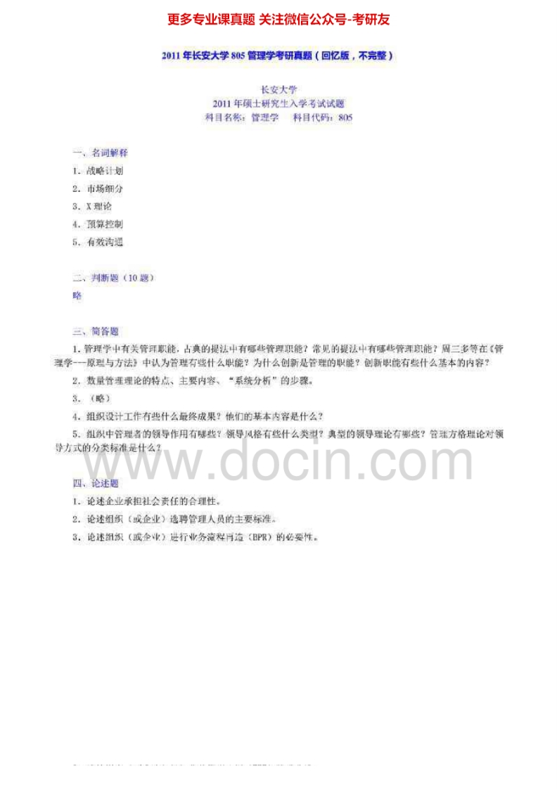 长安大学805管理学2002、2005-2013考研真题汇编.Image.Marked猴哥6个月前发布关注私信2.85MB12页08460长安大学805管理学2002、2005-2013考研真题汇编.Image.Marked此内容为免费资源,请登录后查看¥0 登录查看免费资源 第1页 / 共12页 第2页 / 共12页 第3页 / 共12页 该文档为免费文档,您可直接下载完整版进行阅读 © 版权声明文章版权归作者所有,未经允许请勿转载。THE END《长安大学》(805)管理学考研资料考研专业课 喜欢就支持一下吧点赞60赞赏 分享QQ空间微博QQ好友海报分享复制链接收藏