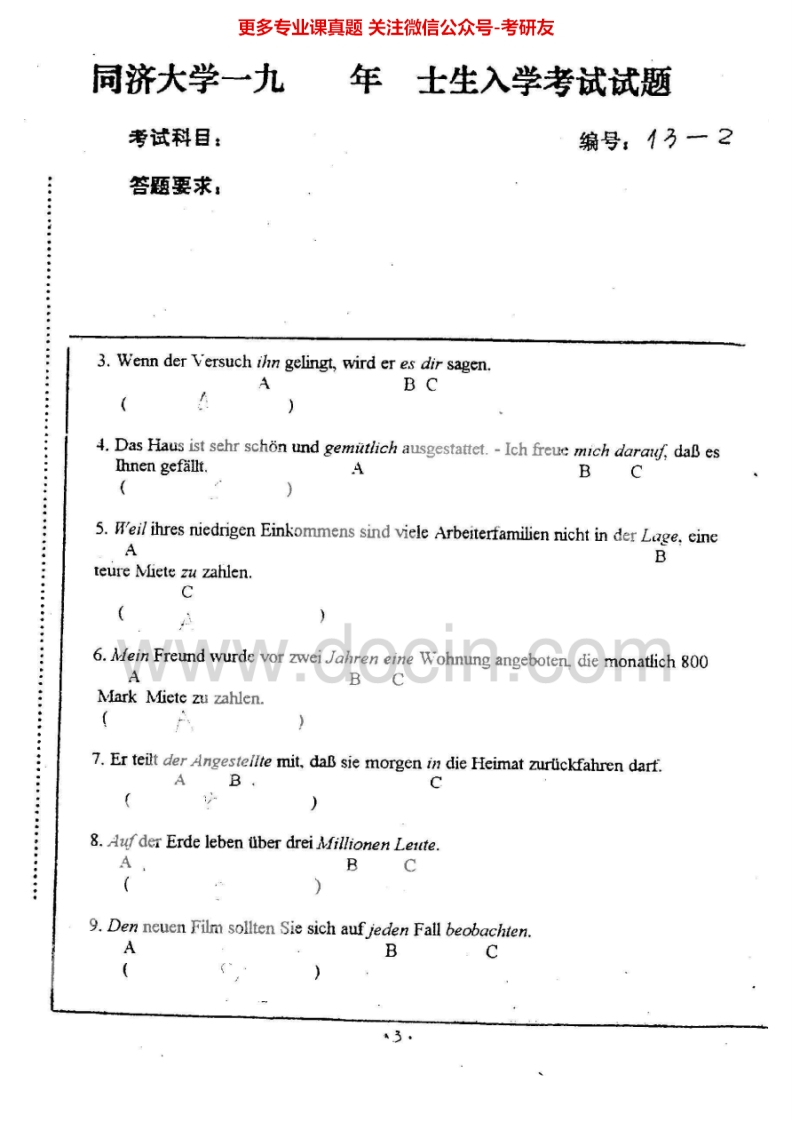 同济大学242德语1997-2000考研真题汇编猴哥6个月前发布关注私信8.58MB23页08125同济大学242德语1997-2000考研真题汇编此内容为免费资源,请登录后查看¥0 登录查看免费资源 第1页 / 共23页 第2页 / 共23页 第3页 / 共23页 该文档为免费文档,您可直接下载完整版进行阅读 © 版权声明文章版权归作者所有,未经允许请勿转载。THE END考研专业课 喜欢就支持一下吧点赞25赞赏 分享QQ空间微博QQ好友海报分享复制链接收藏