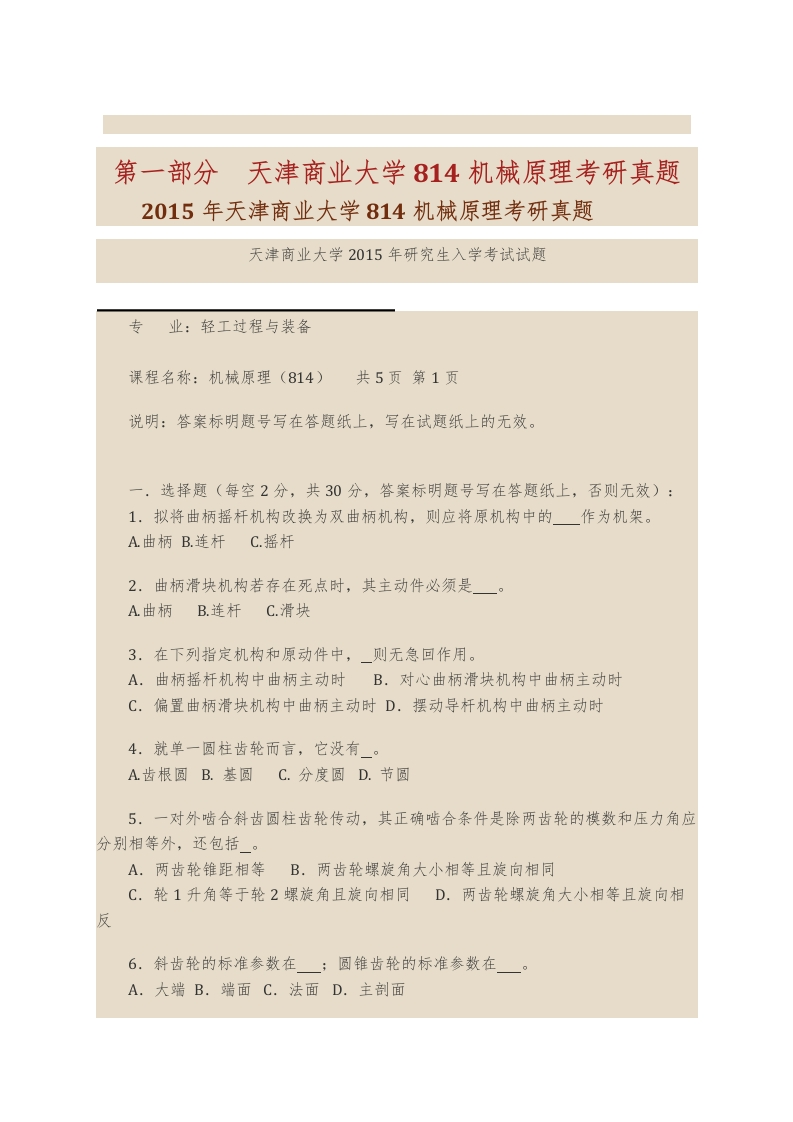 天津商业大学生物技术与食品科学学院814机械原理历年考研真题汇编猴哥6个月前发布关注私信3.21MB23页04053天津商业大学生物技术与食品科学学院814机械原理历年考研真题汇编此内容为免费资源,请登录后查看¥0 登录查看免费资源 第1页 / 共23页 第2页 / 共23页 第3页 / 共23页 该文档为免费文档,您可直接下载完整版进行阅读 © 版权声明文章版权归作者所有,未经允许请勿转载。THE END《天津商业大学》(814)机械原理考研资料考研专业课 喜欢就支持一下吧点赞53赞赏 分享QQ空间微博QQ好友海报分享复制链接收藏