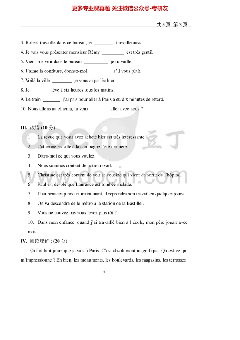 天津商业大学241二外法语2007-2010、2012、2015考研真题汇编.Image.Marked猴哥6个月前发布关注私信2.16MB35页04664天津商业大学241二外法语2007-2010、2012、2015考研真题汇编.Image.Marked此内容为免费资源,请登录后查看¥0 登录查看免费资源 第1页 / 共35页 第2页 / 共35页 第3页 / 共35页 该文档为免费文档,您可直接下载完整版进行阅读 © 版权声明文章版权归作者所有,未经允许请勿转载。THE END考研专业课 喜欢就支持一下吧点赞64赞赏 分享QQ空间微博QQ好友海报分享复制链接收藏