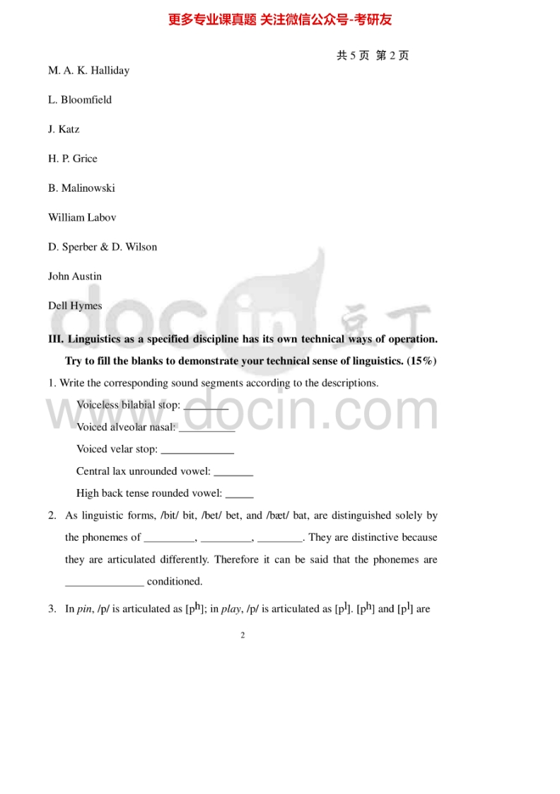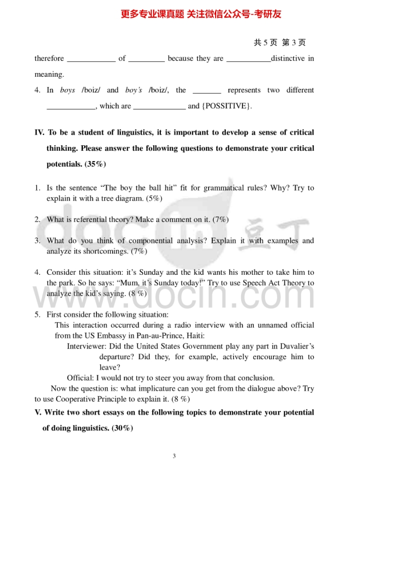 天津商业大学804语言学及翻译2007-2010、2012、2015考研真题汇编.Image.Marked猴哥6个月前发布关注私信1.97MB28页08262天津商业大学804语言学及翻译2007-2010、2012、2015考研真题汇编.Image.Marked此内容为免费资源,请登录后查看¥0 登录查看免费资源 第1页 / 共28页 第2页 / 共28页 第3页 / 共28页 该文档为免费文档,您可直接下载完整版进行阅读 © 版权声明文章版权归作者所有,未经允许请勿转载。THE END考研专业课 喜欢就支持一下吧点赞62赞赏 分享QQ空间微博QQ好友海报分享复制链接收藏