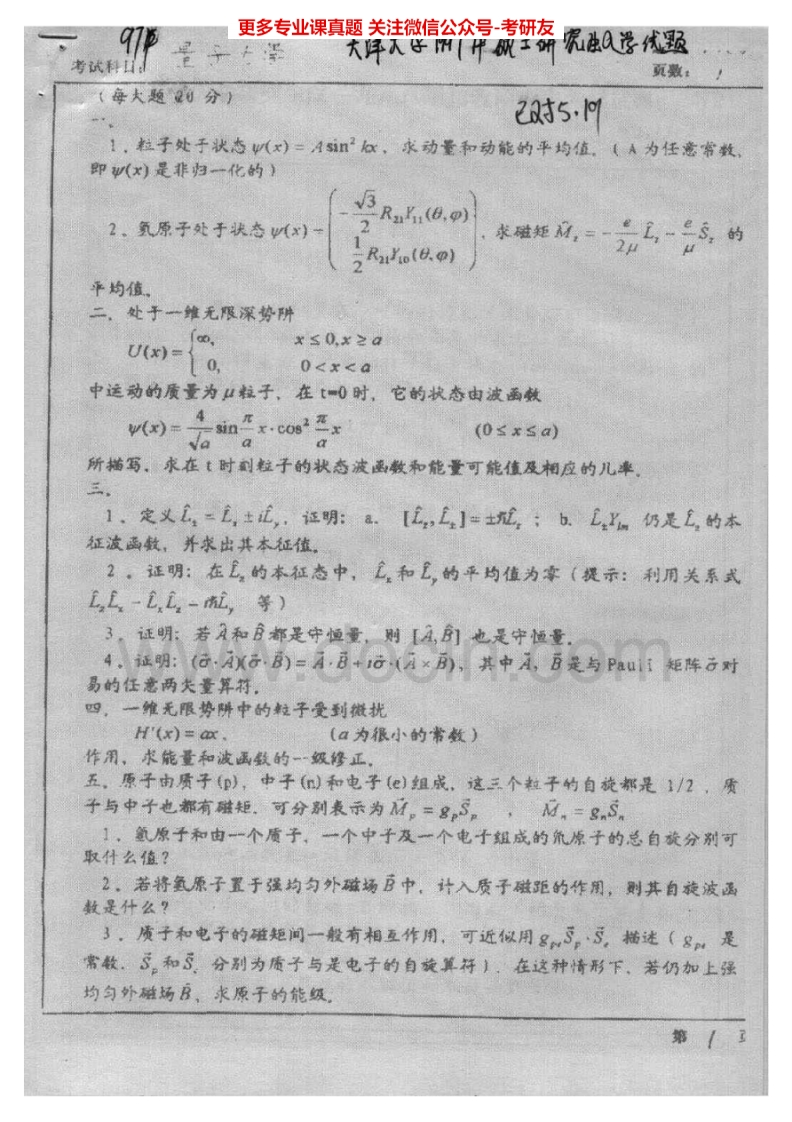 天津大学837量子力学1997-2002考研真题汇编.Image.Marked