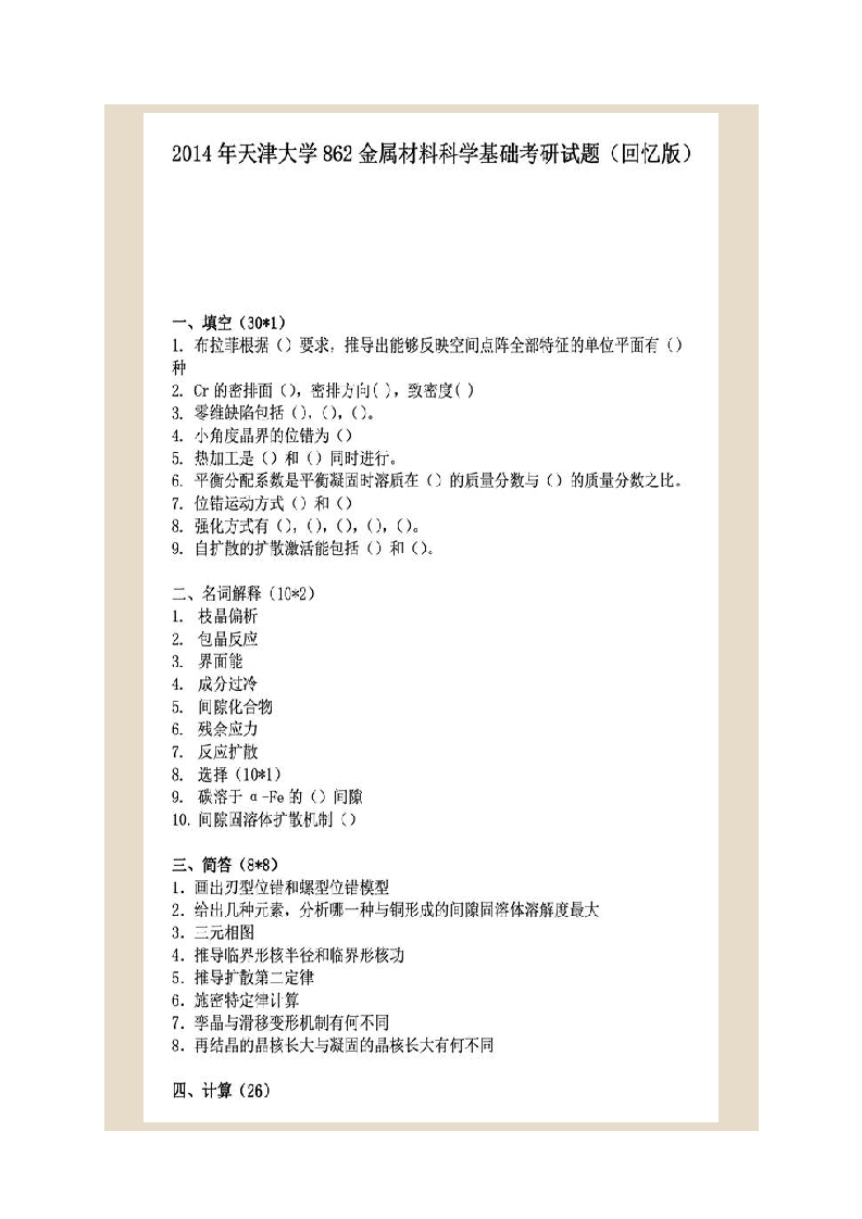 天津大学材料科学与工程学院862金属材料科学基础历年考研真题汇编猴哥6个月前发布关注私信0.86MB16页03939天津大学材料科学与工程学院862金属材料科学基础历年考研真题汇编此内容为免费资源,请登录后查看¥0 登录查看免费资源 第1页 / 共16页 第2页 / 共16页 第3页 / 共16页 该文档为免费文档,您可直接下载完整版进行阅读 © 版权声明文章版权归作者所有,未经允许请勿转载。THE END《天津大学》(862)金属材料科学基础考研资料考研专业课 喜欢就支持一下吧点赞39赞赏 分享QQ空间微博QQ好友海报分享复制链接收藏