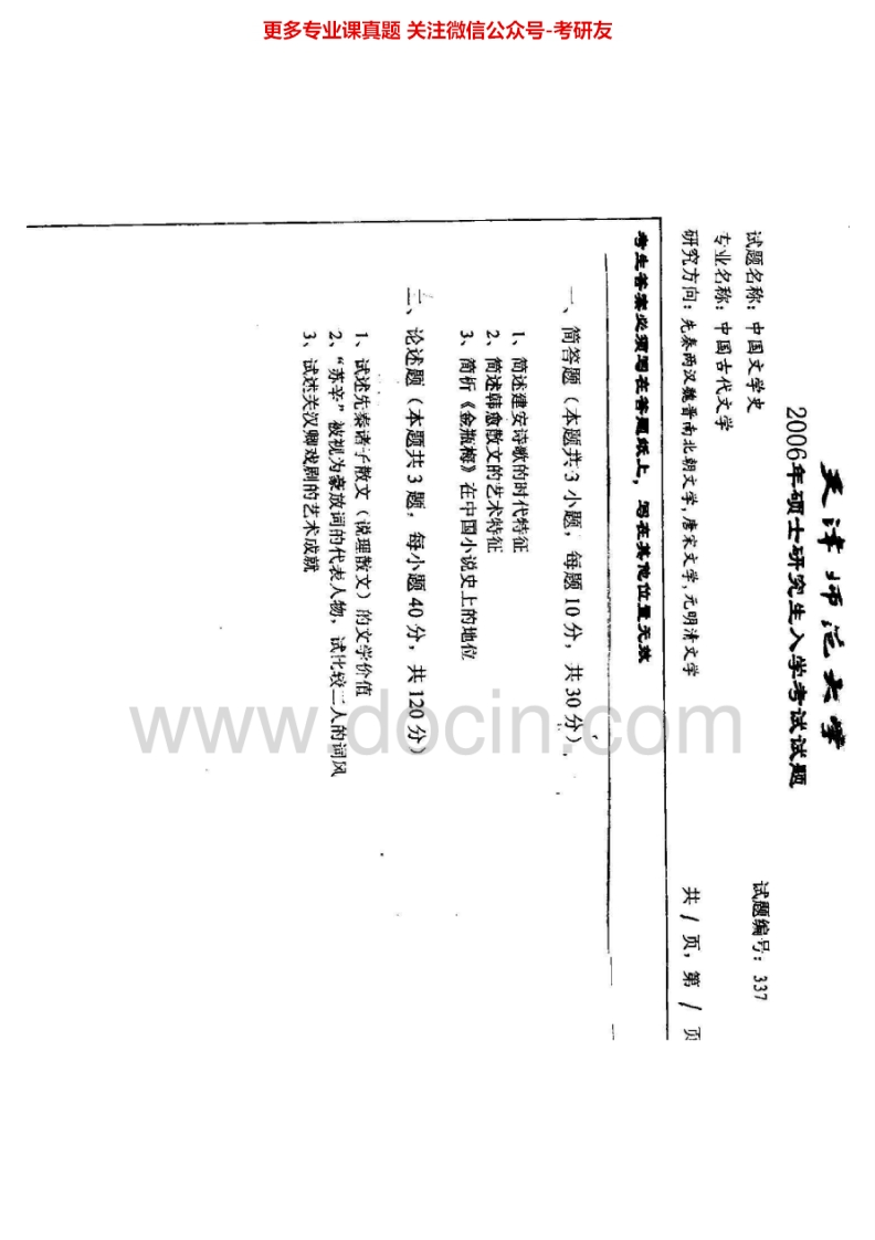 天津师范大学中文专业文学基础常识考研真题汇编.Image.Marked猴哥6个月前发布关注私信2.70MB8页03030天津师范大学中文专业文学基础常识考研真题汇编.Image.Marked此内容为免费资源,请登录后查看¥0 登录查看免费资源 第1页 / 共8页 第2页 / 共8页 第3页 / 共8页 该文档为免费文档,您可直接下载完整版进行阅读 © 版权声明文章版权归作者所有,未经允许请勿转载。THE END考研专业课 喜欢就支持一下吧点赞30赞赏 分享QQ空间微博QQ好友海报分享复制链接收藏