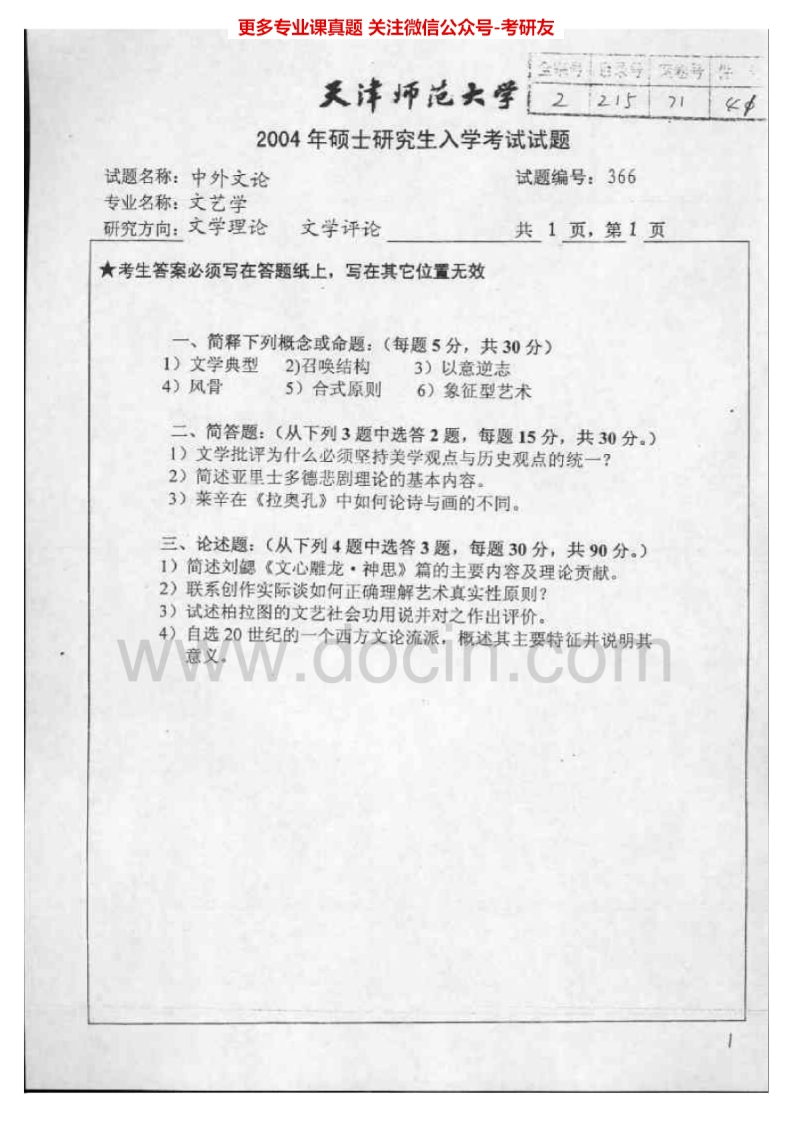 天津师范大学中外文论考研真题汇编.Image.Marked猴哥6个月前发布关注私信3.48MB7页09744天津师范大学中外文论考研真题汇编.Image.Marked此内容为免费资源,请登录后查看¥0 登录查看免费资源 第1页 / 共7页 第2页 / 共7页 第3页 / 共7页 该文档为免费文档,您可直接下载完整版进行阅读 © 版权声明文章版权归作者所有,未经允许请勿转载。THE END考研专业课 喜欢就支持一下吧点赞44赞赏 分享QQ空间微博QQ好友海报分享复制链接收藏