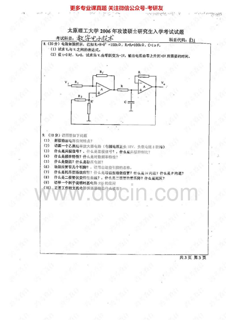 太原理工大学881数字电子技术2006-2007、2013考研真题汇编.Image.Marked猴哥6个月前发布关注私信2.19MB7页07456太原理工大学881数字电子技术2006-2007、2013考研真题汇编.Image.Marked此内容为免费资源,请登录后查看¥0 登录查看免费资源 第1页 / 共7页 第2页 / 共7页 第3页 / 共7页 该文档为免费文档,您可直接下载完整版进行阅读 © 版权声明文章版权归作者所有,未经允许请勿转载。THE END《太原理工大学》(881)数字电子技术基础考研资料考研专业课 喜欢就支持一下吧点赞56赞赏 分享QQ空间微博QQ好友海报分享复制链接收藏