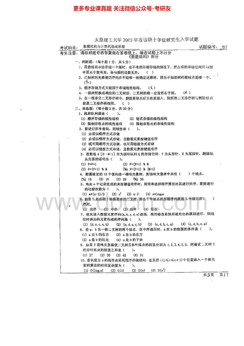太原理工大学833数据结构和计算机组成原理2004-2007考研真题汇编.Image.Marked猴哥6个月前发布关注私信3.58MB11页09245太原理工大学833数据结构和计算机组成原理2004-2007考研真题汇编.Image.Marked此内容为免费资源,请登录后查看¥0 登录查看免费资源 第1页 / 共11页 第2页 / 共11页 第3页 / 共11页 该文档为免费文档,您可直接下载完整版进行阅读 © 版权声明文章版权归作者所有,未经允许请勿转载。THE END《太原理工大学》(833)数据结构和计算机组成原理考研资料考研专业课 喜欢就支持一下吧点赞45赞赏 分享QQ空间微博QQ好友海报分享复制链接收藏
